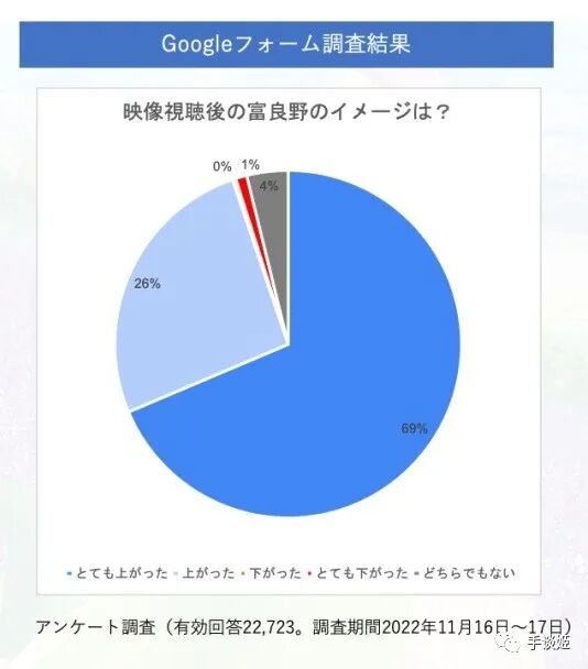 可以看出,认为看了动画后形象很大提升的占了71%,日本媒体那边的说法是超过10万人中有超过93%的人表达了富良野形象提升的意向。