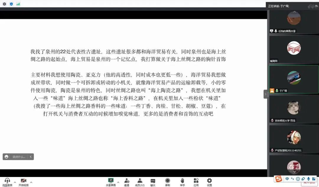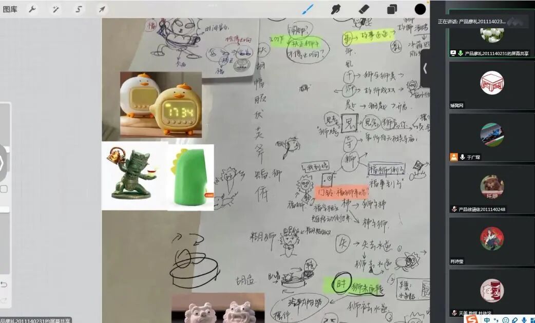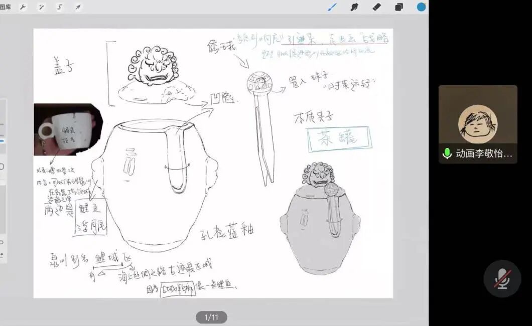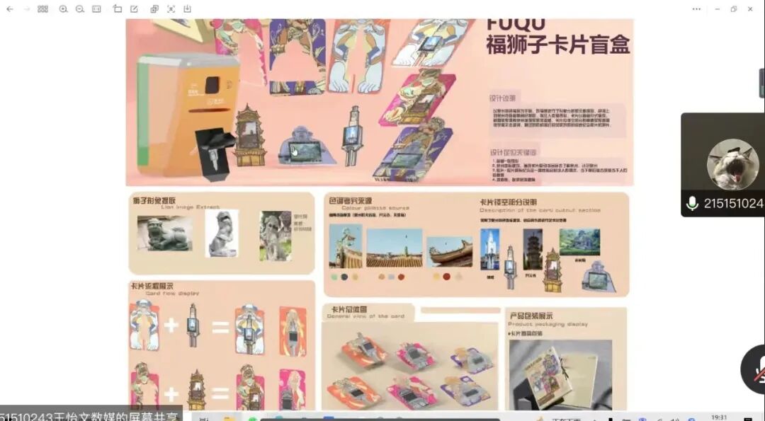 学员依次进行方案陈述和创意来源的阐释,介绍其方案可行性和预达成效果。老师在基础上进行创意点评和给出修改建议,如:对一些固有形象要进行深入内涵挖掘,文创设计要结合其内核和属性,使其形成严谨的逻辑闭环;注意形象的绘制,在进行抽象化和夸张化表达时要保留形象本身的鲜明特色等。