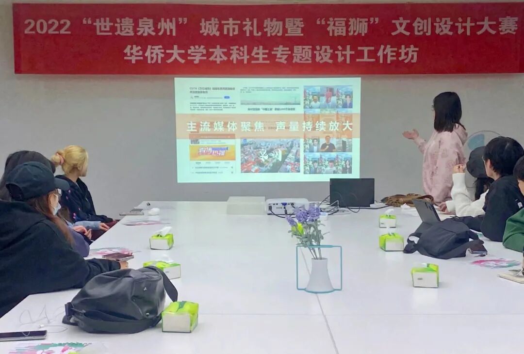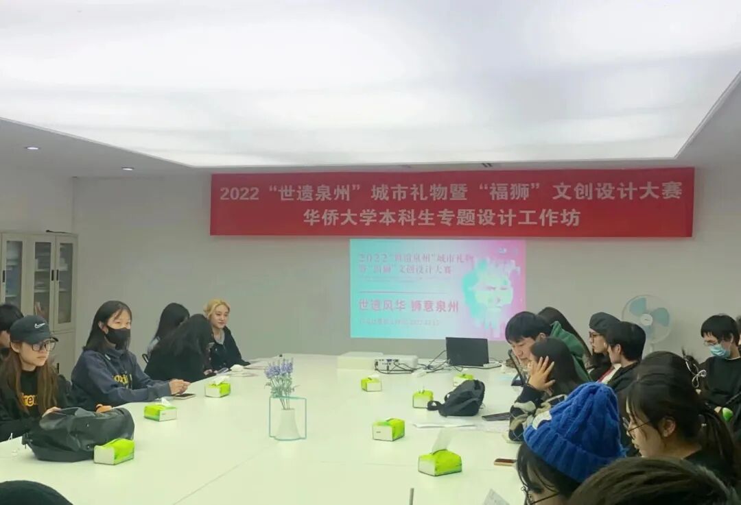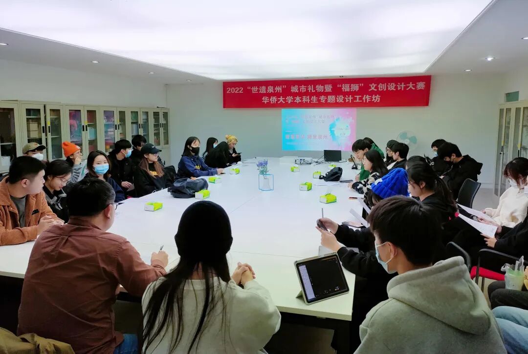 2022“世遗泉州”城市礼物”暨“福狮”文创设计大赛联合华侨大学开展大赛主题活动——世遗文脉·共创新生本科生、境外生专题设计工作坊,组织共超50名来自境外研修班和境内的学生,进行“世遗泉州”和“福狮文化”的内涵梳理和文创设计的思路引导,期待共创出能够传达泉州文化的城市礼品和文创产品。