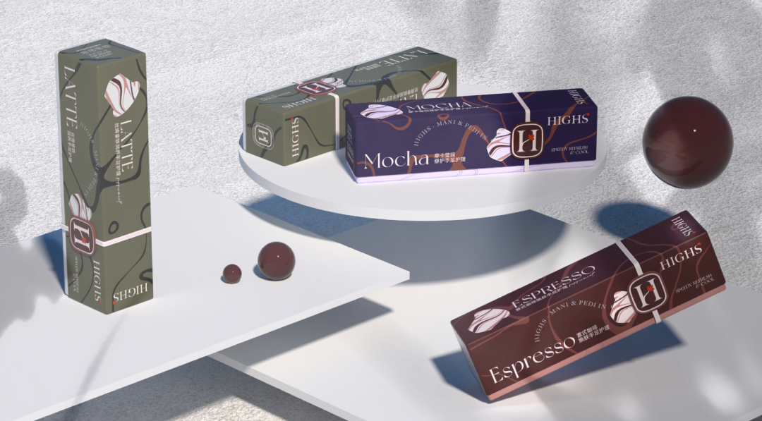 三种不同色调寓意三款不同口味的咖啡