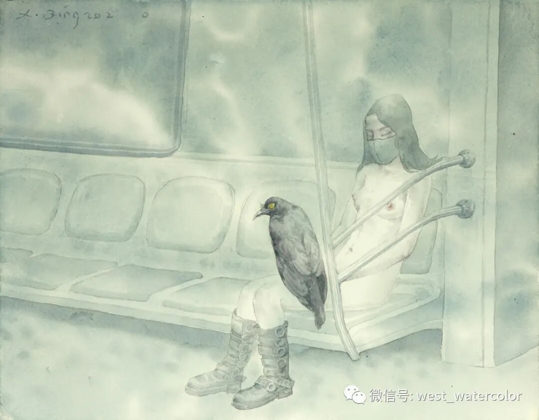 徐青《最后一班地铁之乌鸦》32x41cm 2020 江苏苏州
