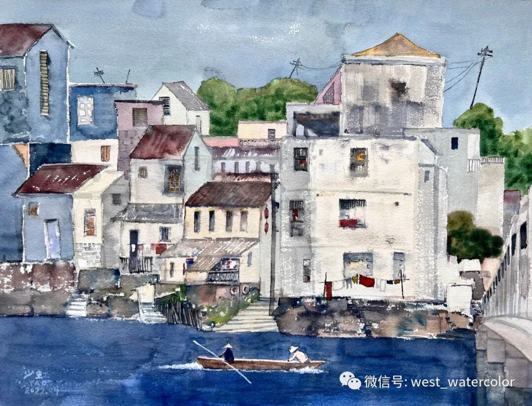 姚少虹 《河岸人家》46x61cm 2022 广东广州