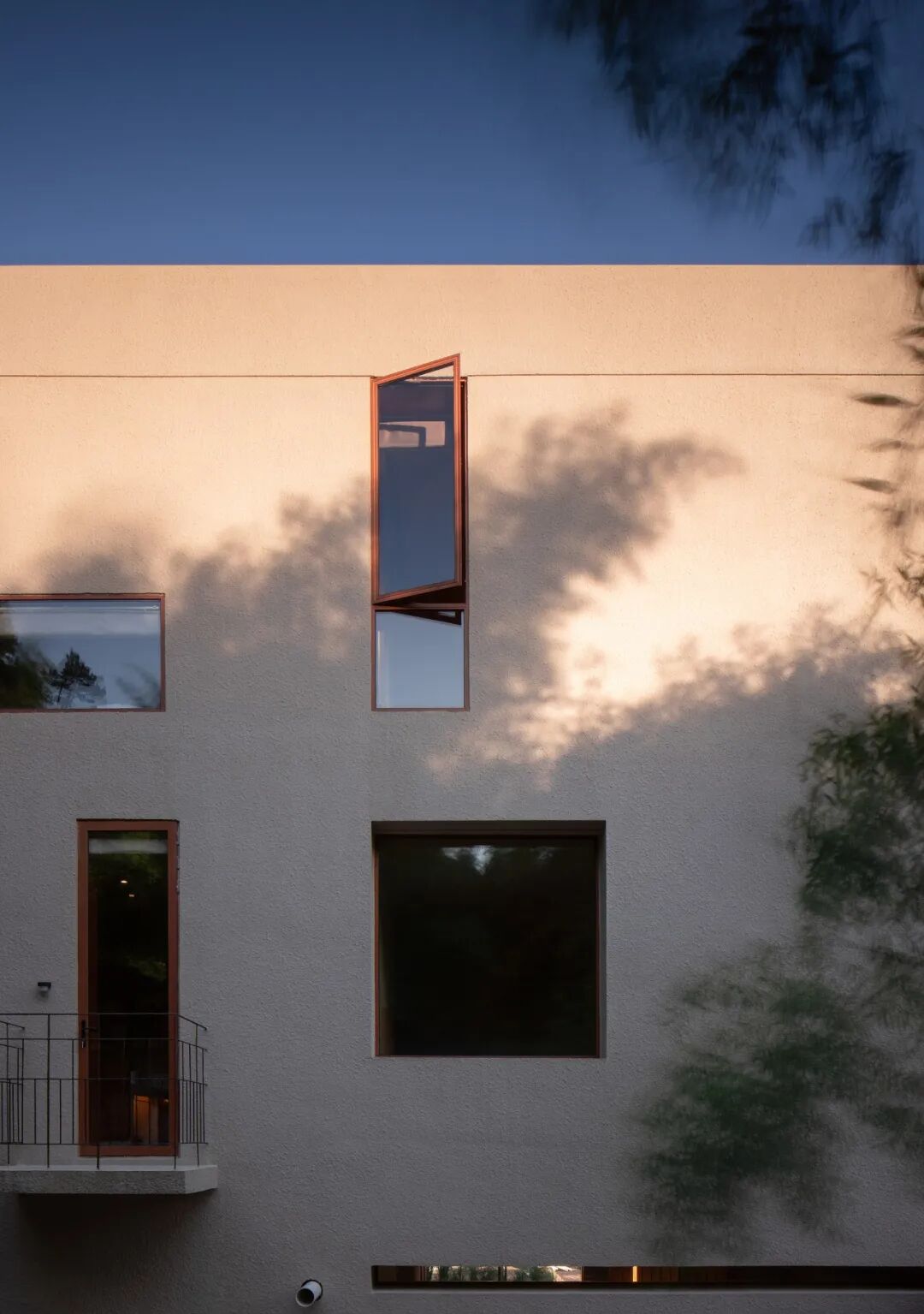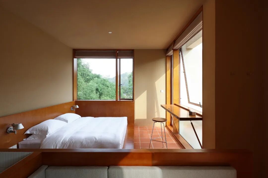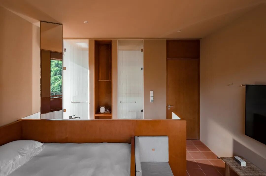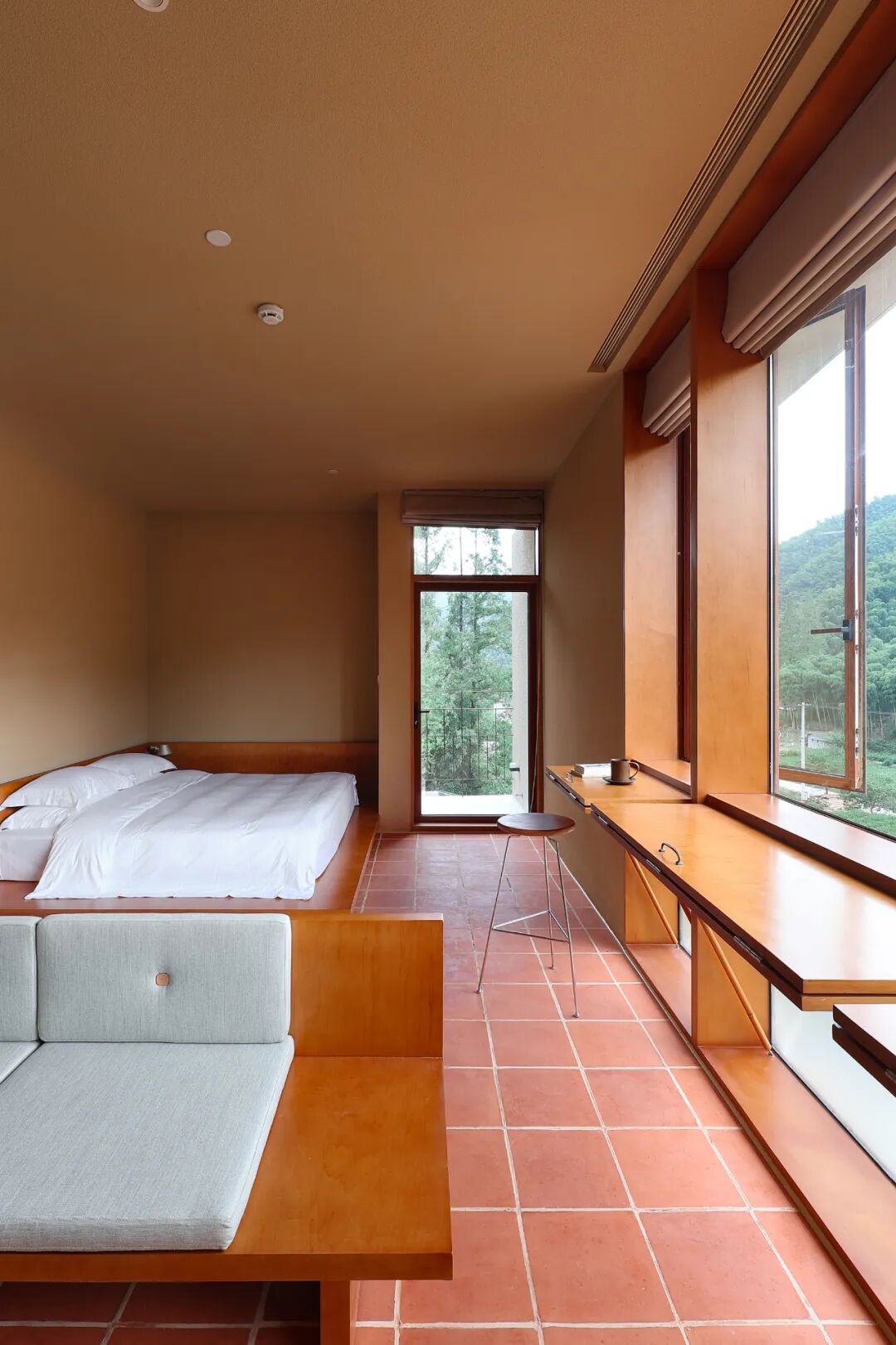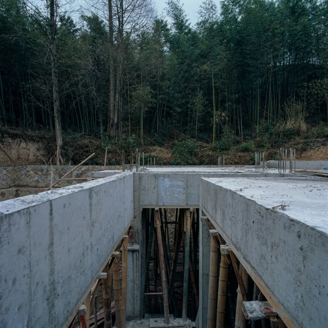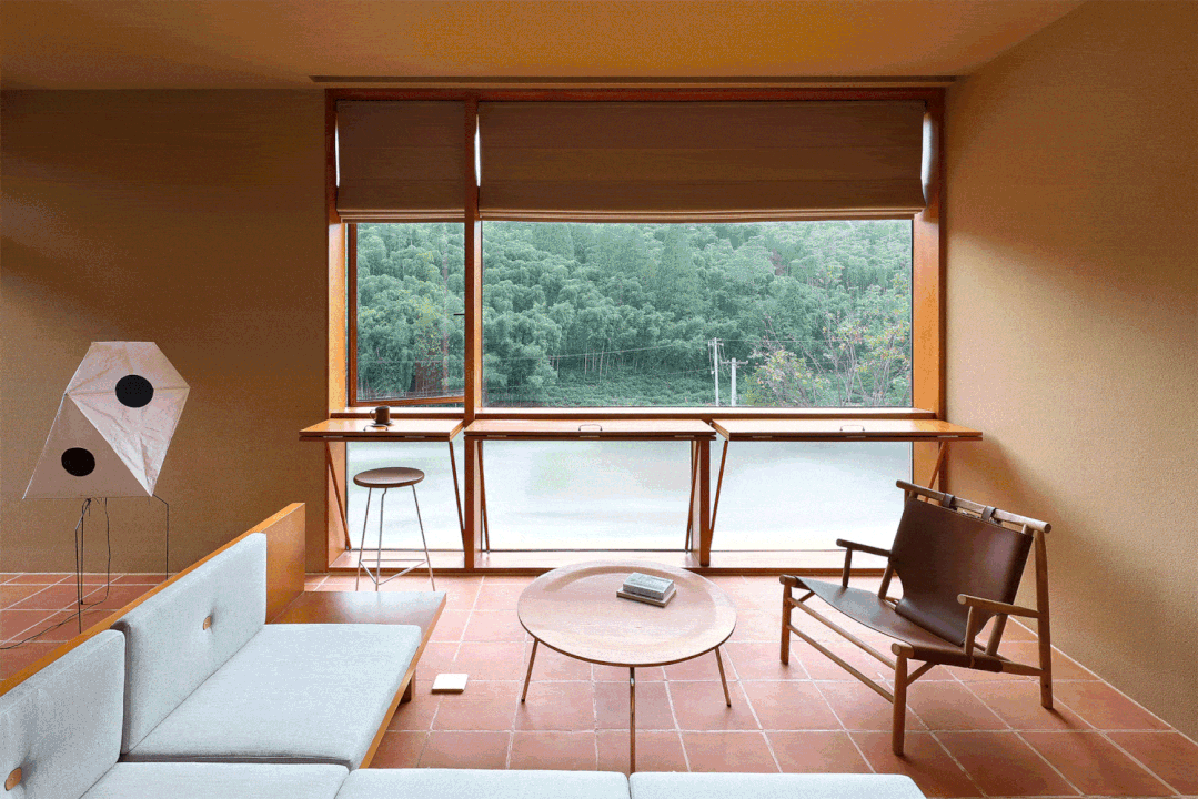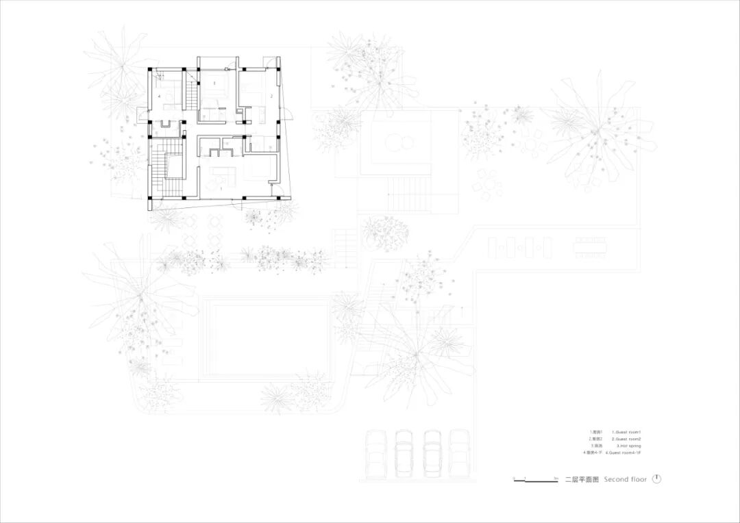 设计解读 场地初探 项目基地位于浙江省湖州市德清县莫干山镇甘露茶厂的西侧,该茶厂由业主兄弟二人经营,业主希望通过改建自家老宅后拉动当地采茶产业。原始老宅基地北面背靠竹海,东面面朝茶田,前方是开阔的山峦。当我们第一次到访时业主已将老宅完全拆除,并平整了场地。 ©️实在建筑SZ-ARCHITECTS 建造条件 同时由于当地政策限制,新建建筑长宽高均不得超过12m,因此建造条件限制较为苛刻,建筑以立方体的姿态被孤立在一块空地中。业主有几方面的诉求,1.希望将造价控制在非常低的范围内。2.民宿建成之后他和家人们也将其作为自己的新家,在此建筑中居住和生活。3.莫干山作为莫干黄芽的重要产地,重新激活茶产业,他希望民宿建成后也是一个黄芽体验馆,可以招待村里的客人,定期举办品茶、赏茶、论茶的活动。因此该项目既是一栋对外运营的民宿,同时也是一个温馨的“家”,更是周边村民的“客厅”。 ©️实在建筑SZ-ARCHITECTS 设计切入点 项目场地的四周虽然拥有丰富多样的景色和植物,水杉、茶田、竹林和远处的山峦,但是较为杂乱无序。 因此我们试图将视觉所见的景色进行重新梳理,结合建筑内部的路径动线设计,依次从高到低,随着建筑各个立面不同的开窗方式,从多个角度、高度引入形成了视觉对景,不同的空间尺度和类型进行呼应。 对应山峰、山谷、山脚、山麓、山腰有节奏的将每个景色排列到每个窗景上,如同一幅展开的山水长卷。 ©️实在建筑SZ-ARCHITECTS 为了消解原本由于建造条件限制而形成的较为呆板的正方体,我们将原本悬挑的阳台进行斜向延伸,形成了在视觉上每层建筑朝向各有不同的效果,使得建筑的体态更为丰富,同时也保证了土建的施工难度和整体造价控制。建筑门窗对应不同景色和不同房间设置了多种不同的开启方式,通过在窗套上增设可折叠上翻的活动挑板,当挑板翻起时可作为房间的吧台使用,丰富了窗户的功能性。 建筑内部的布局为了将民宿和家有机地融合在一起,我们将房屋的一层设置为家和民宿的共同起居空间,包厢通过移动隔断形成可封闭餐厅,既能作为民宿的商务包厢使用,也是家的餐厅。大堂的客厅提供了家人与客人在民宿中互相交流的空间。整体建筑通过设置三处挑空空间,串联起不同楼层视觉上的对景体验。为了确保阳光可以准确地射入室内,我们根据1:15的实体手工模型,调整了窗洞大小以及吊顶的斜度。三楼的户外中庭将自然与天光引入室内,模糊了室内外的边界。 土法建造 乡村建造的难点在于施工队并非城市中有经验的专业施工建设团队,基本为村中的家族团队,并且衍生出了许多城市中不常见的土法建造。 在建筑主体混凝土结构浇筑时,我们非常惊喜地看到了当地用莫干山最常见的竹子来代替原本混凝土浇筑时采用的支撑钢管架。通过大量的毛竹进行支撑混凝土楼板,形成了一个非常有趣野生的支撑系统,正如莫干山的竹林那样充满生命力。 ©️大川又Mata Okawa ©️大川又Mata Okawa 建筑材料 我们希望建筑材料能具有在地性,回到自然与营造的关系上,同时满足现代生活的实际要求。我们充分地利用当地现有的材料,既控制建造成本又能找到当地工匠施工。垒毛石墙、竹结构茶棚、真石漆、室内的红色黏土砖等都是当地常见的材料。 莫干山横岭村传统民居大部分分为两种,一种是砖墙作为建筑墙体,外墙以水泥抹灰作为装饰。另一种则是以石墙作为建筑结构墙体的石构建筑。 ©️大川又Mata Okawa ©️大川又Mata Okawa 石构建筑是乡村风貌的重要特征,同时也是乡村肌理最重要的痕迹。传统石构建筑虽然有着墙体厚重、保温性能好等优势,但材料损耗极其严重,防水性能较差,抗震效果不佳。完全复刻传统垒石墙的做法并不是最佳选择。 建筑东立面 建筑南立面 因此我们通过保留毛石墙面的视觉效果,同时作为建筑的围护结构,去除传统建筑中毛石墙作为结构支撑的作用,通过在砌块墙与毛石片之间增设保温、防水层,既延续了传统建筑的视觉肌理,也降低了施工难度,提高了建筑材料的热工性能。 ©️大川又Mata Okawa 建筑门窗对应不同景色和不同房间设置了多种不同的开启方式,通过在窗套上增设可折叠上翻的活动挑板,当挑板翻起时可作为房间的吧台使用,丰富了窗户的功能性。 ©️大川又Mata Okawa ©️大川又Mata Okawa ©️大川又Mata Okawa ©️大川又Mata Okawa ©️大川又Mata Okawa ©️大川又Mata Okawa ©️大川又Mata Okawa ©️大川又Mata Okawa ©️大川又Mata Okawa ©️大川又Mata Okawa ©️大川又Mata Okawa ©️大川又Mata Okawa ©️大川又Mata Okawa ©️大川又Mata Okawa ©️大川又Mata Okawa ©️大川又Mata Okawa ©️大川又Mata Okawa ©️大川又Mata Okawa ©️大川又Mata Okawa ©️实在建筑 SZ-ARCHITECTS ©️大川又Mata Okawa ©️大川又Mata Okawa ©️大川又Mata Okawa ©️大川又Mata Okawa ©️大川又Mata Okawa ©️大川又Mata Okawa ©️大川又Mata Okawa ©️大川又Mata Okawa ©️大川又Mata Okawa ©️大川又Mata Okawa ©️大川又Mata Okawa ©️大川又Mata Okawa ©️大川又Mata Okawa ©️大川又Mata Okawa ©️大川又Mata Okawa ©️大川又Mata Okawa ©️大川又Mata Okawa ©️实在建筑 SZ-ARCHITECTS ©️实在建筑 SZ-ARCHITECTS ©️实在建筑 SZ-ARCHITECTS ©️实在建筑 SZ-ARCHITECTS ©️实在建筑 SZ-ARCHITECTS ©️实在建筑 SZ-ARCHITECTS 项目信息 项目名称:莫干山木子林夕云民宿 项目位