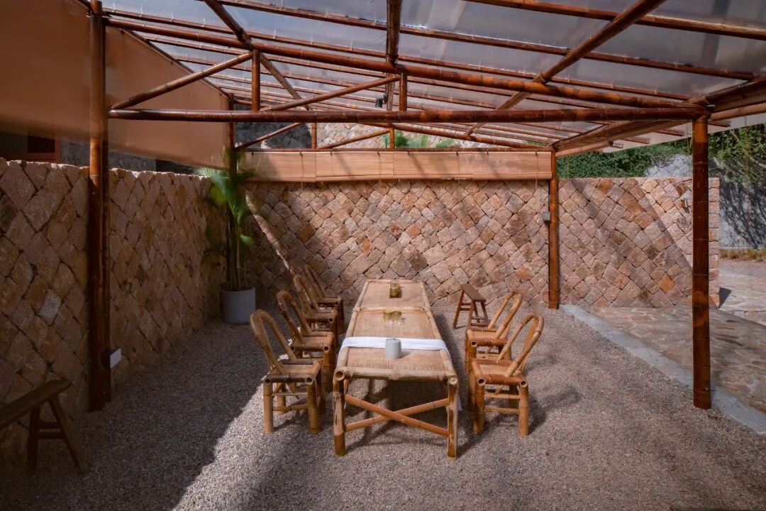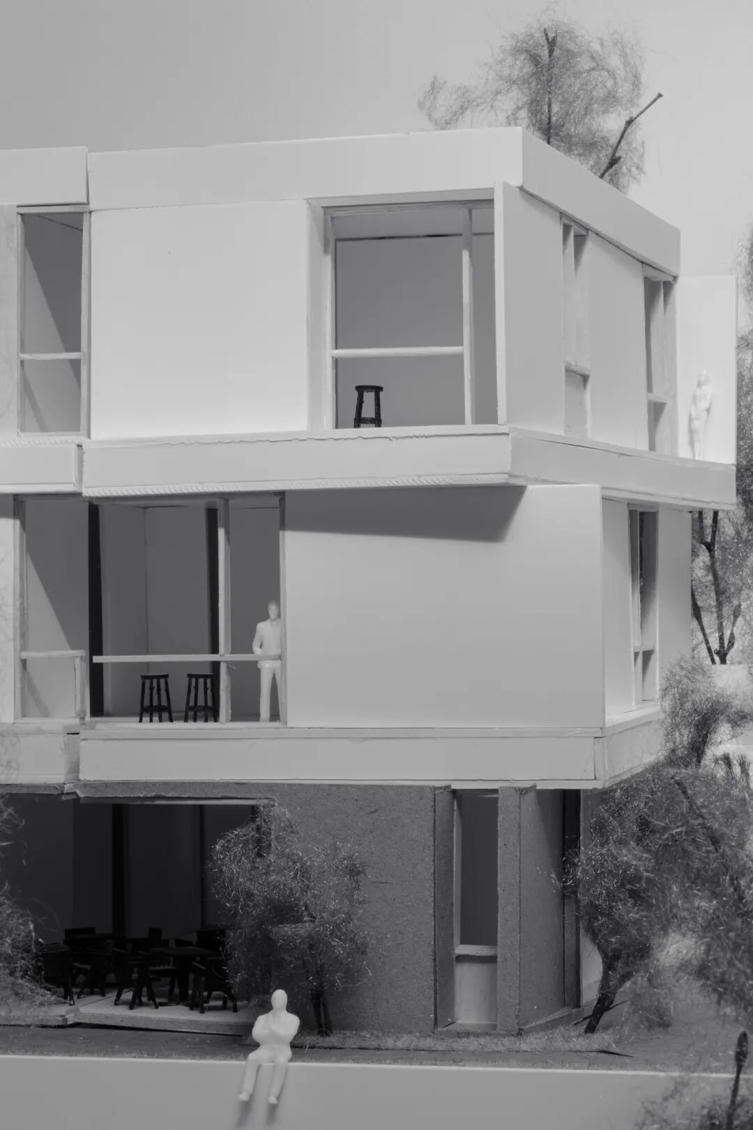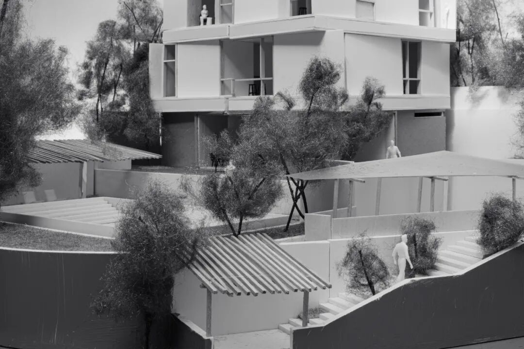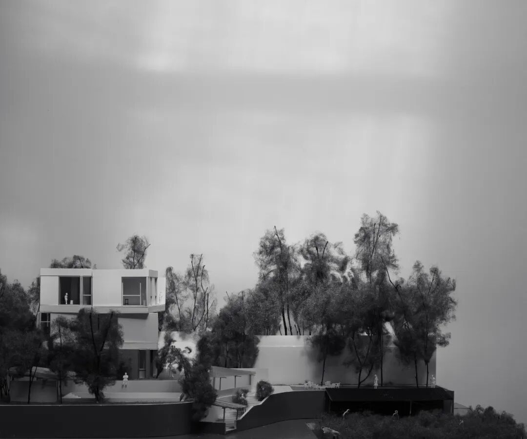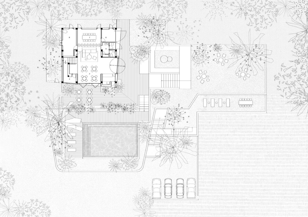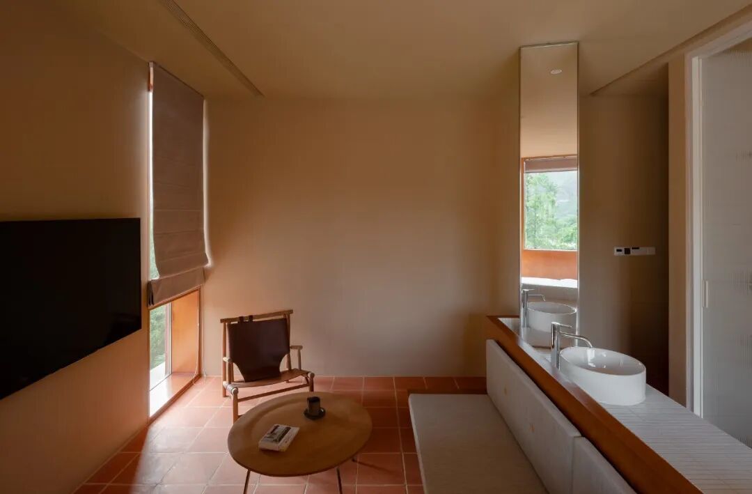 设计解读 场地初探 项目基地位于浙江省湖州市德清县莫干山镇甘露茶厂的西侧,该茶厂由业主兄弟二人经营,业主希望通过改建自家老宅后拉动当地采茶产业。原始老宅基地北面背靠竹海,东面面朝茶田,前方是开阔的山峦。当我们第一次到访时业主已将老宅完全拆除,并平整了场地。 ©️实在建筑SZ-ARCHITECTS 建造条件 同时由于当地政策限制,新建建筑长宽高均不得超过12m,因此建造条件限制较为苛刻,建筑以立方体的姿态被孤立在一块空地中。业主有几方面的诉求,1.希望将造价控制在非常低的范围内。2.民宿建成之后他和家人们也将其作为自己的新家,在此建筑中居住和生活。3.莫干山作为莫干黄芽的重要产地,重新激活茶产业,他希望民宿建成后也是一个黄芽体验馆,可以招待村里的客人,定期举办品茶、赏茶、论茶的活动。因此该项目既是一栋对外运营的民宿,同时也是一个温馨的“家”,更是周边村民的“客厅”。 ©️实在建筑SZ-ARCHITECTS 设计切入点 项目场地的四周虽然拥有丰富多样的景色和植物,水杉、茶田、竹林和远处的山峦,但是较为杂乱无序。 因此我们试图将视觉所见的景色进行重新梳理,结合建筑内部的路径动线设计,依次从高到低,随着建筑各个立面不同的开窗方式,从多个角度、高度引入形成了视觉对景,不同的空间尺度和类型进行呼应。 对应山峰、山谷、山脚、山麓、山腰有节奏的将每个景色排列到每个窗景上,如同一幅展开的山水长卷。 ©️实在建筑SZ-ARCHITECTS 为了消解原本由于建造条件限制而形成的较为呆板的正方体,我们将原本悬挑的阳台进行斜向延伸,形成了在视觉上每层建筑朝向各有不同的效果,使得建筑的体态更为丰富,同时也保证了土建的施工难度和整体造价控制。建筑门窗对应不同景色和不同房间设置了多种不同的开启方式,通过在窗套上增设可折叠上翻的活动挑板,当挑板翻起时可作为房间的吧台使用,丰富了窗户的功能性。 建筑内部的布局为了将民宿和家有机地融合在一起,我们将房屋的一层设置为家和民宿的共同起居空间,包厢通过移动隔断形成可封闭餐厅,既能作为民宿的商务包厢使用,也是家的餐厅。大堂的客厅提供了家人与客人在民宿中互相交流的空间。整体建筑通过设置三处挑空空间,串联起不同楼层视觉上的对景体验。为了确保阳光可以准确地射入室内,我们根据1:15的实体手工模型,调整了窗洞大小以及吊顶的斜度。三楼的户外中庭将自然与天光引入室内,模糊了室内外的边界。 土法建造 乡村建造的难点在于施工队并非城市中有经验的专业施工建设团队,基本为村中的家族团队,并且衍生出了许多城市中不常见的土法建造。 在建筑主体混凝土结构浇筑时,我们非常惊喜地看到了当地用莫干山最常见的竹子来代替原本混凝土浇筑时采用的支撑钢管架。通过大量的毛竹进行支撑混凝土楼板,形成了一个非常有趣野生的支撑系统,正如莫干山的竹林那样充满生命力。 ©️大川又Mata Okawa ©️大川又Mata Okawa 建筑材料 我们希望建筑材料能具有在地性,回到自然与营造的关系上,同时满足现代生活的实际要求。我们充分地利用当地现有的材料,既控制建造成本又能找到当地工匠施工。垒毛石墙、竹结构茶棚、真石漆、室内的红色黏土砖等都是当地常见的材料。 莫干山横岭村传统民居大部分分为两种,一种是砖墙作为建筑墙体,外墙以水泥抹灰作为装饰。另一种则是以石墙作为建筑结构墙体的石构建筑。 ©️大川又Mata Okawa ©️大川又Mata Okawa 石构建筑是乡村风貌的重要特征,同时也是乡村肌理最重要的痕迹。传统石构建筑虽然有着墙体厚重、保温性能好等优势,但材料损耗极其严重,防水性能较差,抗震效果不佳。完全复刻传统垒石墙的做法并不是最佳选择。 建筑东立面 建筑南立面 因此我们通过保留毛石墙面的视觉效果,同时作为建筑的围护结构,去除传统建筑中毛石墙作为结构支撑的作用,通过在砌块墙与毛石片之间增设保温、防水层,既延续了传统建筑的视觉肌理,也降低了施工难度,提高了建筑材料的热工性能。 ©️大川又Mata Okawa 建筑门窗对应不同景色和不同房间设置了多种不同的开启方式,通过在窗套上增设可折叠上翻的活动挑板,当挑板翻起时可作为房间的吧台使用,丰富了窗户的功能性。 ©️大川又Mata Okawa ©️大川又Mata Okawa ©️大川又Mata Okawa ©️大川又Mata Okawa ©️大川又Mata Okawa ©️大川又Mata Okawa ©️大川又Mata Okawa ©️大川又Mata Okawa ©️大川又Mata Okawa ©️大川又Mata Okawa ©️大川又Mata Okawa ©️大川又Mata Okawa ©️大川又Mata Okawa ©️大川又Mata Okawa ©️大川又Mata Okawa ©️大川又Mata Okawa ©️大川又Mata Okawa ©️大川又Mata Okawa ©️大川又Mata Okawa ©️实在建筑 SZ-ARCHITECTS ©️大川又Mata Okawa ©️大川又Mata Okawa ©️大川又Mata Okawa ©️大川又Mata Okawa ©️大川又Mata Okawa ©️大川又Mata Okawa ©️大川又Mata Okawa ©️大川又Mata Okawa ©️大川又Mata Okawa ©️大川又Mata Okawa ©️大川又Mata Okawa ©️大川又Mata Okawa ©️大川又Mata Okawa ©️大川又Mata Okawa ©️大川又Mata Okawa ©️大川又Mata Okawa ©️大川又Mata Okawa ©️实在建筑 SZ-ARCHITECTS ©️实在建筑 SZ-ARCHITECTS ©️实在建筑 SZ-ARCHITECTS ©️实在建筑 SZ-ARCHITECTS ©️实在建筑 SZ-ARCHITECTS ©️实在建筑 SZ-ARCHITECTS 项目信息 项目名称:莫干山木子林夕云民宿 项目位