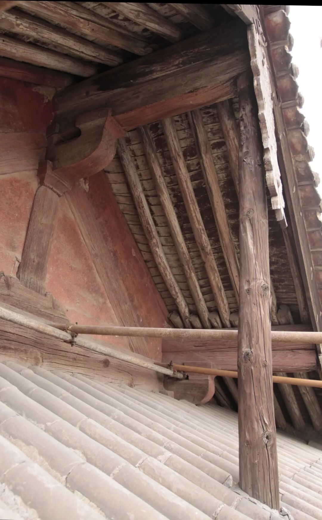 山面出际做法,是厦两头与九脊殿的区别之一,如殿阁出际做法上的夹际柱子与系头栿,即是区别于南方厦两头出际的构造做法。