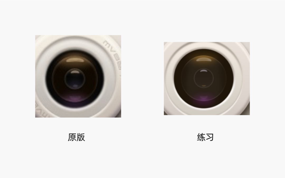 首先是每个层内部的对比,比如镜头层,原版明暗对比更加明显,而练习的作品就有些糊,有些平,没有那么透彻: