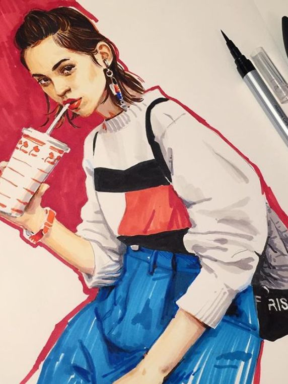Diana Kuksa痴迷于时装画的绘制,她的时尚态度体现在细腻丰富的绘画作品中,时装体积感、层次感的精准把握令人惊叹,她知道该如何让自己的描绘产生灵魂,并将我们的视觉牢牢地凝固在人物的轮廓中。