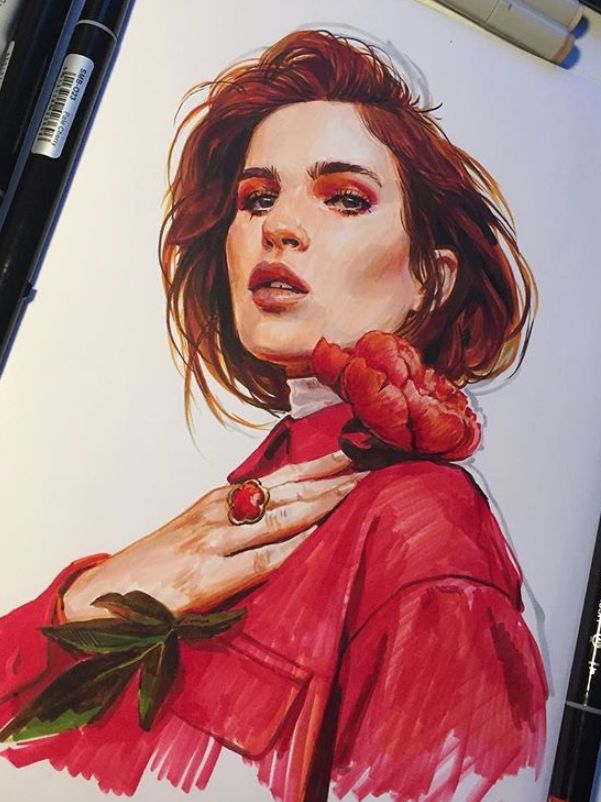 Diana Kuksa通过会综合的灵活运用各种颜料来表现形态各异的质感,无论是水彩、彩铅,还是色粉、马克笔,她都能找到独具韵味的表达方式。此外,她还擅于结合了数字技术和传统技艺来创作富有视觉表现力的人物肖像插图。