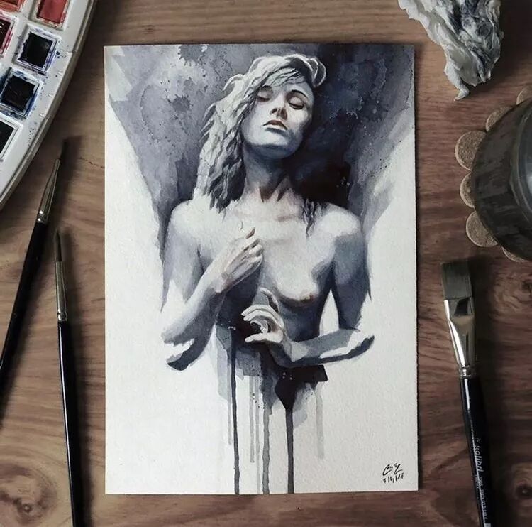 时装画风格探索|Miroslav Zgabaj超梦幻水墨质感水彩时装绘制步骤分享!