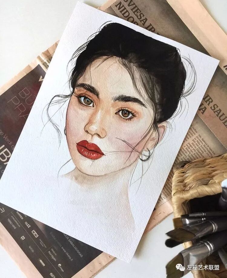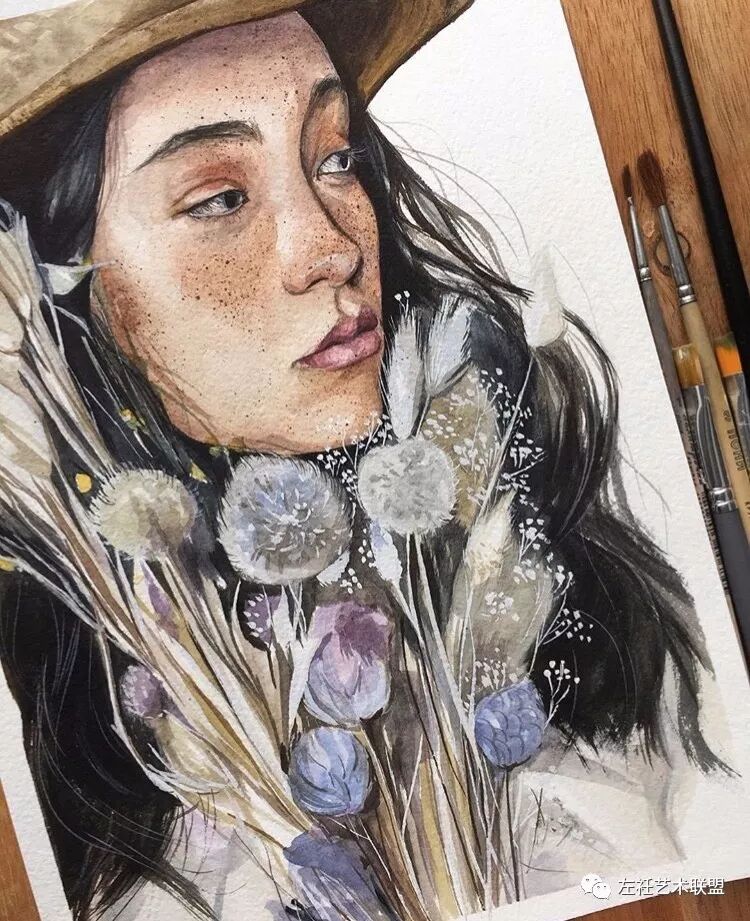 Alina Dorokhovich来自白俄罗斯首都 明斯克(Minsk),对于艺术的热爱驱使她笔不离手的进行创作。水彩在她自如的挥洒中,表达了一个个美丽而多情的面庞。
