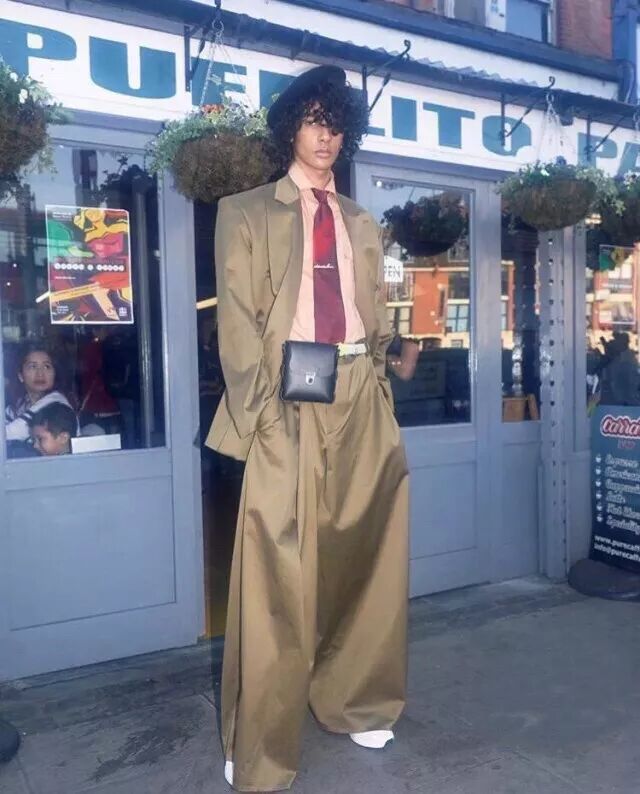 Martine Rose 本人也是个先锋时尚追求者,极力布料形态和比例发挥到极其夸张的地步,与主流审美相背,总能找到更能激发青年兴奋点的东西。
