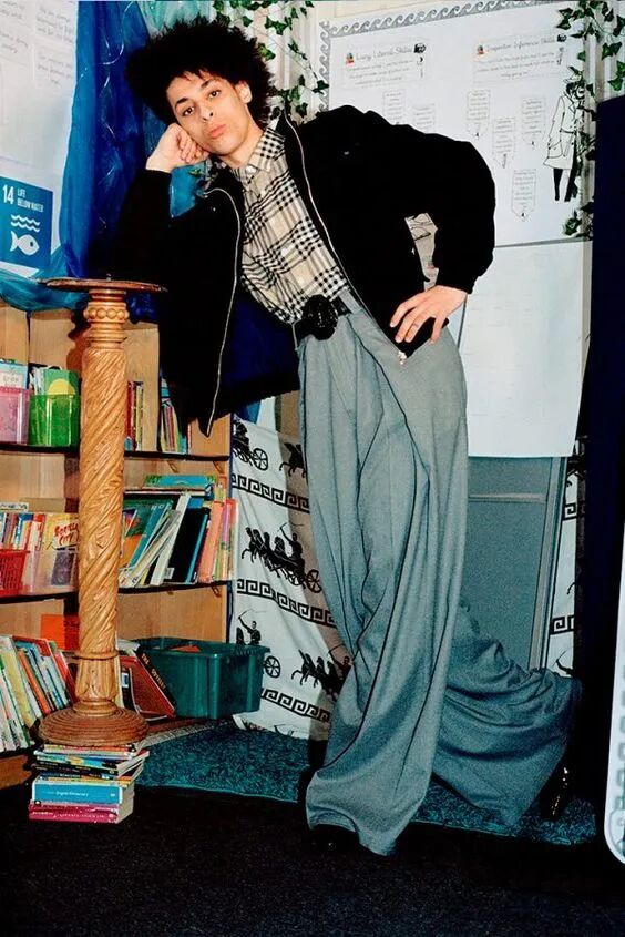 喜欢极度夸张加大的服装,夸大男性原型体贴标准,跨越男性和女性的性别界限,在造型搭配和呈现方式上趋向呈现伦敦中下层阶级最真实的形态。