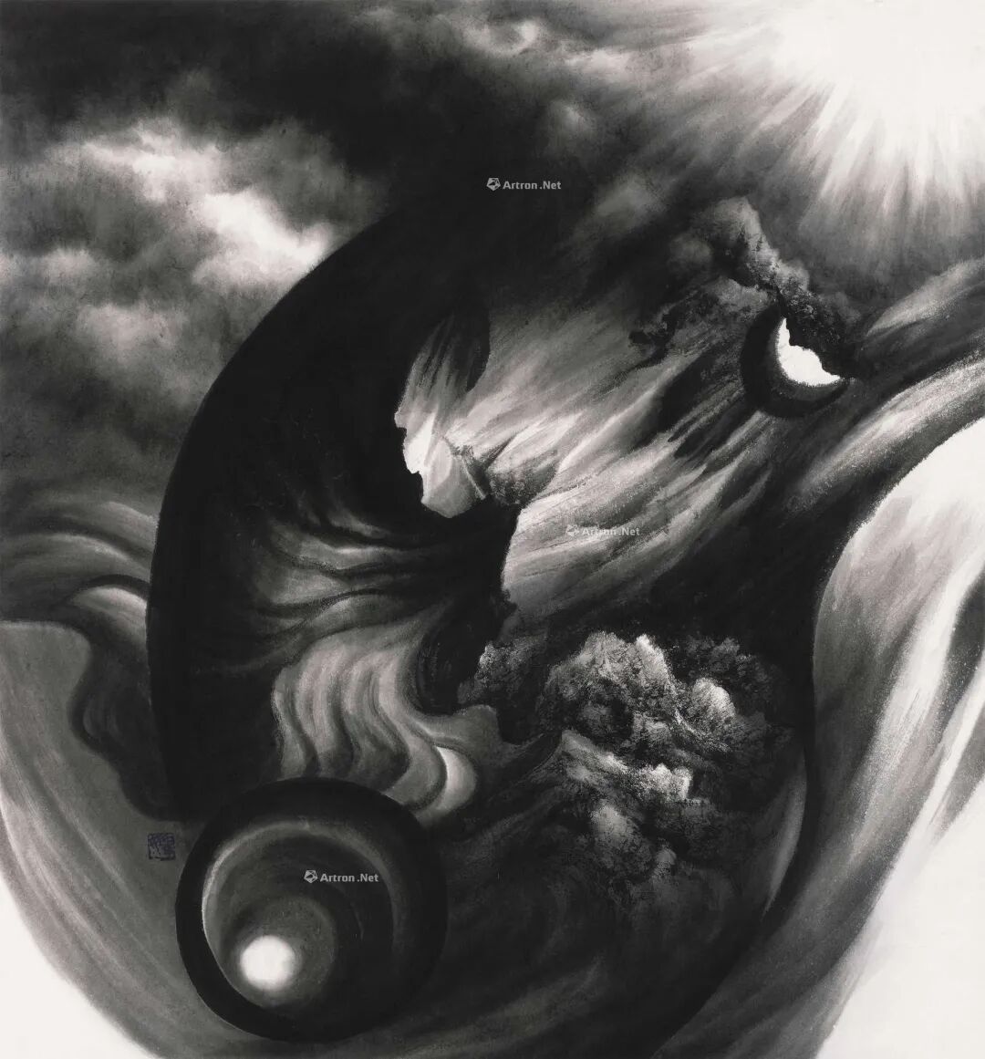 “中国山水画所向往的是天地之道的自然意境,是中国思想精神根源不断发展变化丰富的绘画呈现。姬子先生早年传统中国画北宗正脉的扎实笔墨和高远意境,就已经是一位优秀的中国山水画家。但姬子先生并没有满足于此,在花甲古稀之年依旧探寻变法。中国画入门难,花几十年能入门有笔墨功夫和格调品位就已经让人赞叹,姬子先生并没有重复固有的中国画笔墨程式和趣味,而是延续中国山水画天地之道的精神本质追求,在新时代人类进入太空和宇宙科学观的当代世界里,试图重新构建创新出中国山水精神更大宇宙之道的当代意境。这在中国山水画领域,已经是超越了很多固有常识的经验同道。姬子先生的水墨绘画作品视角,和古人山水画不同,他是以现代文明科技的可能,至少是在海拔10000米以上的视野,来观察宇宙时空这个‘大山水’大气象,这种宇宙视角画面,可能会带有某种神秘的‘天地观’,它像是宏观的星际天象,也像是微观的粒子碰撞,然后都似乎在相互交融中孕育新的希望生机诞生,从这个视角,逐渐会上升到了所谓的‘神性’,或是‘道’的层面,最后又回归到艺术家对人类博爱、大爱的现代性思考上,承古开今,相信这对中国山水画的当代发展有着重要的历史贡献。”