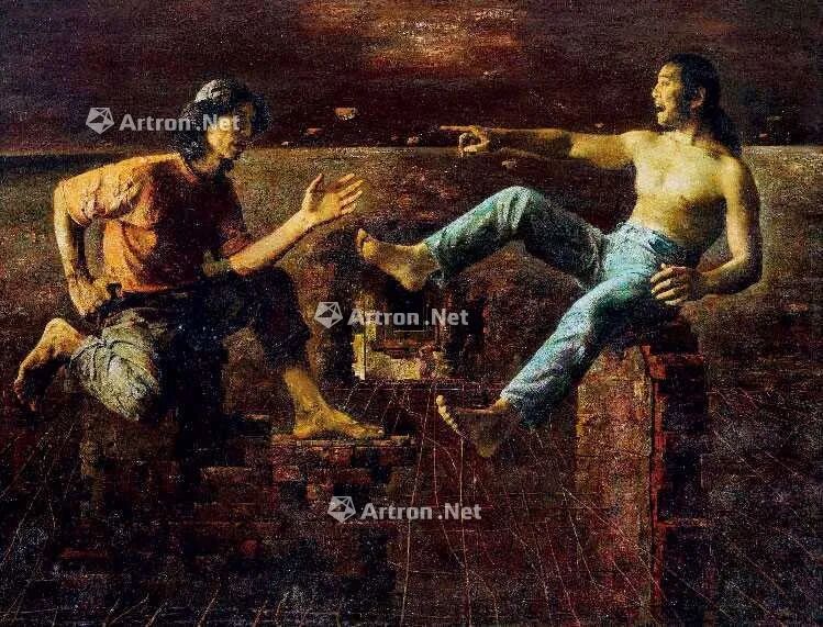“郭润文的这件《生存问题》是他九十年代的代表作之一。用超现实的手法表现现实生活中的情感、体验和记忆是九十年代郭润文典型的表现手法,这件作品具有鲜明的时代特征,反映了当时青年知识分子圈子的一种普遍情绪,对生存问题的哲学性思考和困惑,像画中表现的那样,既认真严肃又带着某种空中楼阁式的荒诞。”