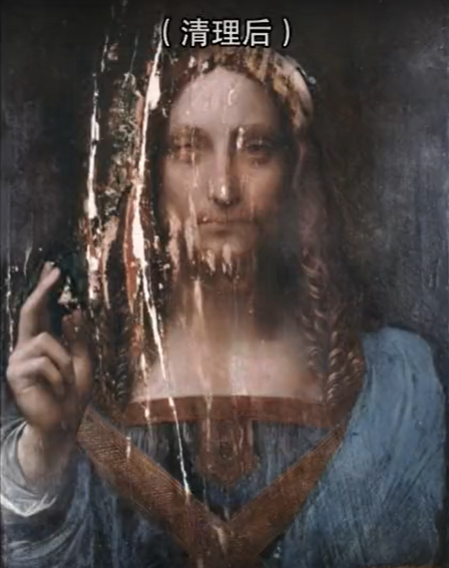 甫见该画的马里奥判断这幅作品出自一个伟大的艺术家之手,但是时代应该在达·芬奇之后。然而随着清理的进行,在除去覆盖色后,戴安娜发现《救世主》的手指部分有一处明显的悔笔,这在仿作中几乎不会出现。