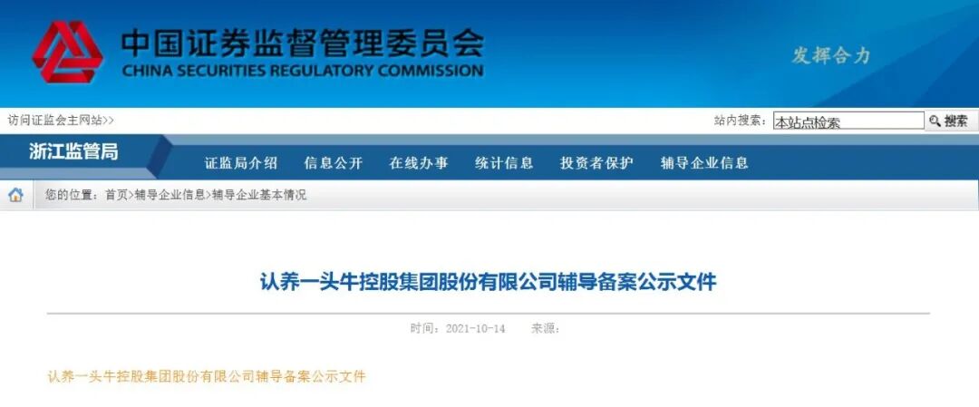 近期,根据中国证监会浙江证监局披露公告显示,认养一头牛已接受A股上市辅导,中信证券担任辅导机构,辅导时间大致为2021年9月至2022年4月。