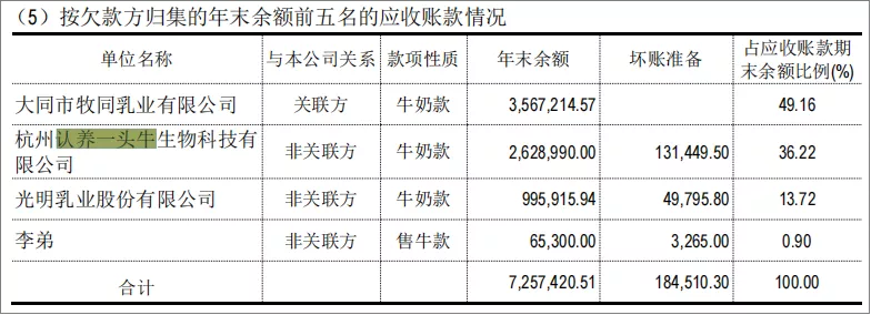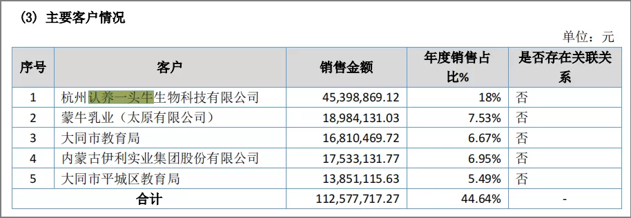 2021年3月,从事生鲜乳及乳制品生产、加工、销售业务的牧同科技发布2020年年报,在报告当中,认养一头牛的名字赫然位列客户列表中的首位。数据显示,其2020年的年度采购金额达4539.89万元,占牧同科技年销售额的18%。这意味着,认养一头牛的奶源并非全部都是“自有奶源”。