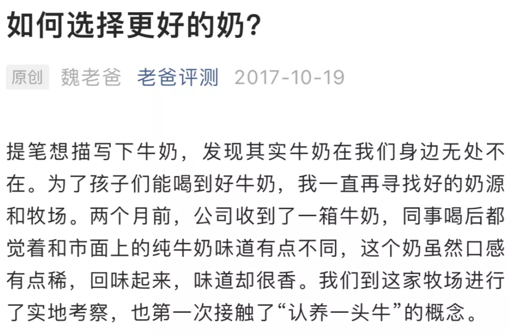 当然,“讲故事”与“做实事”之间并不冲突。在认养一头牛的举措当中,可以看到其将宣传与实践并重的策略。但需要注意的一点在于,当听众越来越多,讲故事的措辞需要越来越严谨。