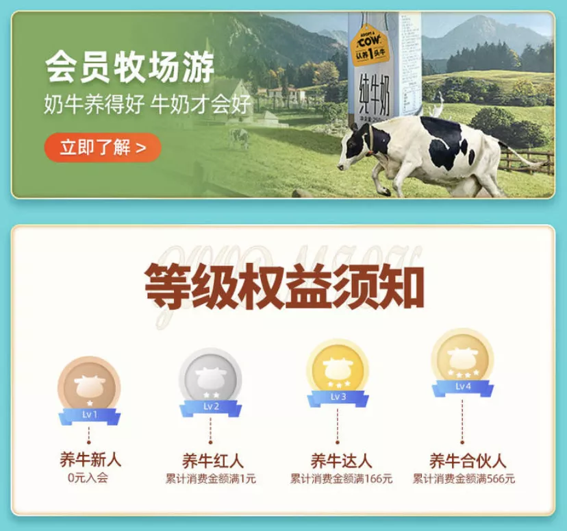 这是认养一头牛的核心模式。在这个过程中,认养一头牛依托上述模式达到了两个目的:一是借此进一步提高对外宣传力度,潜移默化深化自身在用户心中的品牌形象;二是以此实现对用户的长期捆绑。在以往对牛奶的选择中,用户是自由且多变的,从伊利到蒙牛,或是从三元到光明,皆是自身习惯及喜好的问题。但一旦成为所谓的“合伙人”,未来几个月的牛奶需求,几乎已经被锁定。在有了一定沉没成本的基础上,用户在选择上就相对处于被动局面。