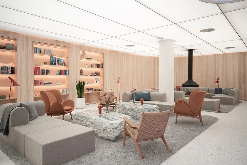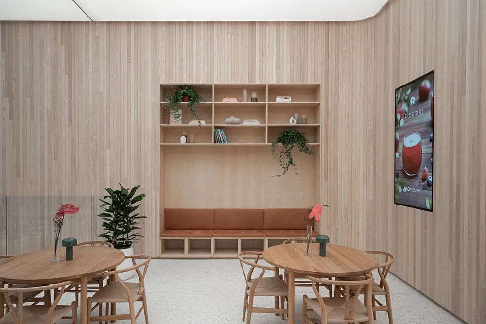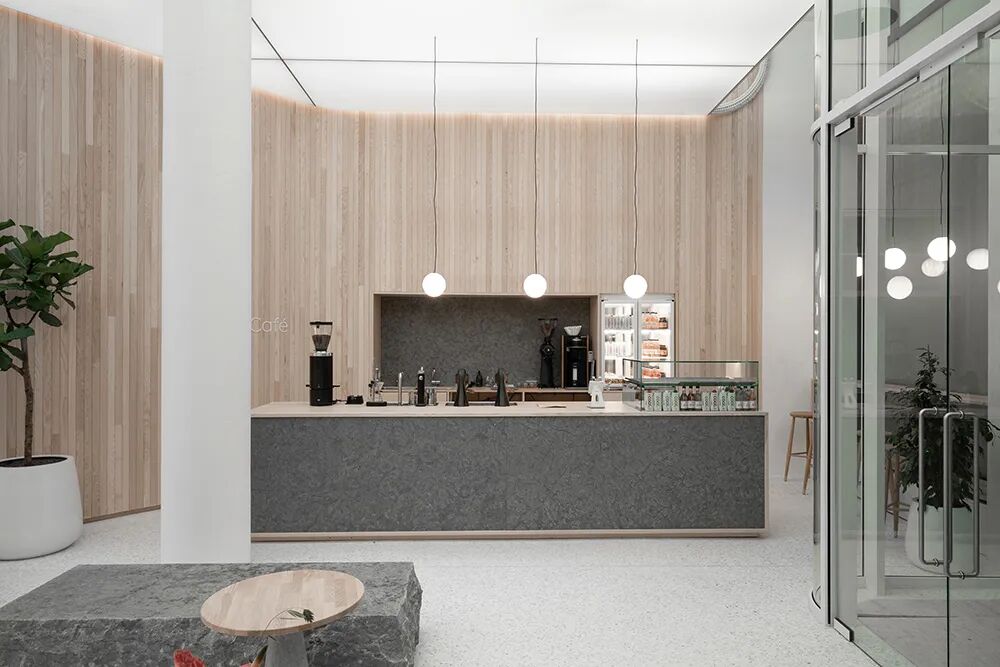 设计致敬了挪威及斯堪的纳维亚半岛的自然、历史和生活方式,将一个开放、透明、舒适的空间,置入连接皇宫和市中心轴线上的历史建筑中。为了呈现 NIO 蔚来对绿色出行的愿景“Blue Sky Coming”,设计团队从整体把控到细节处理,都试图用一种更可持续的方式呈现。
