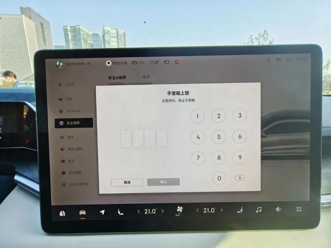 储物箱可通过在中控屏内设计密码锁来保管重要物品,密码锁长期有效,直至更换密码。如果忘记密码可以在手机端重新设置。