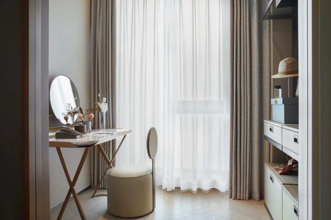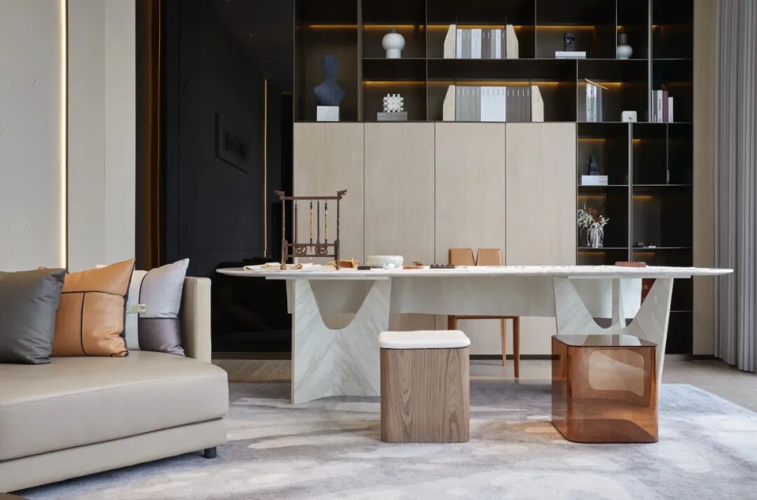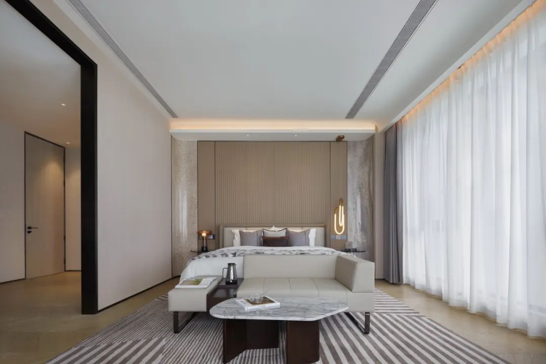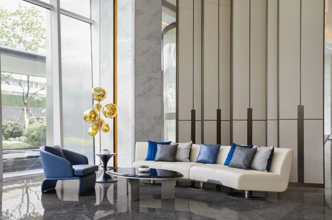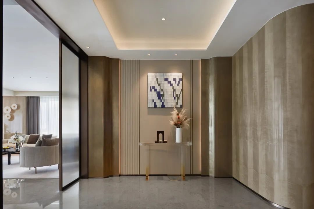 “现代度假风”的角厅,低密大平层,展现现代、轻奢、时尚、艺术、精致的生活韵致,在现代都市中实现轻松的度假生活。