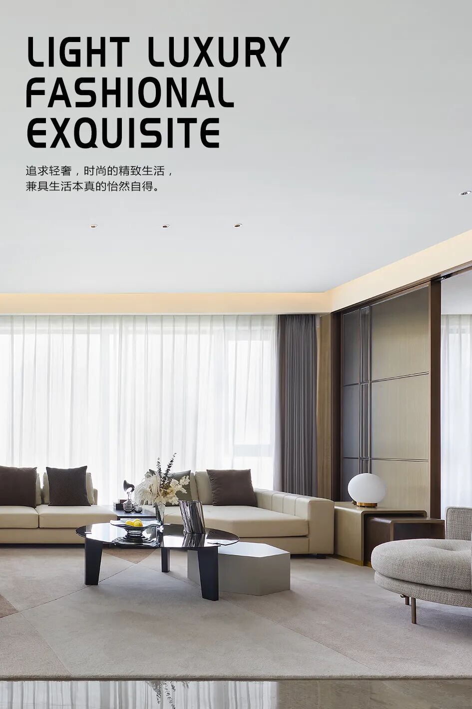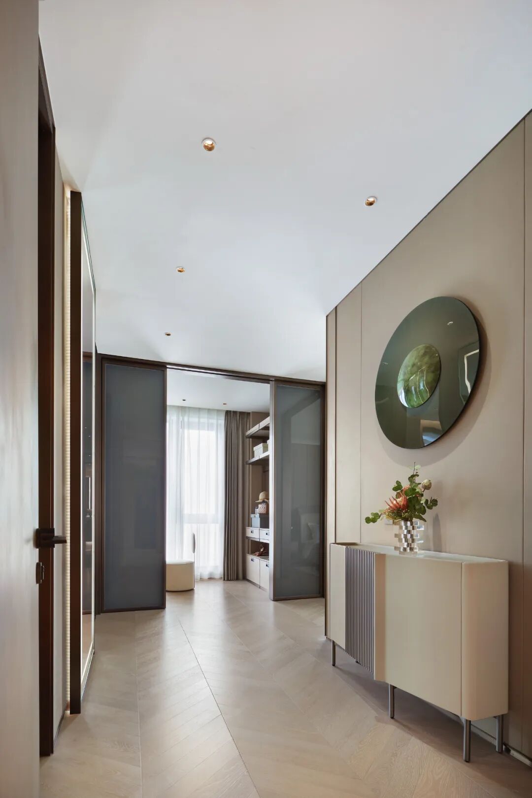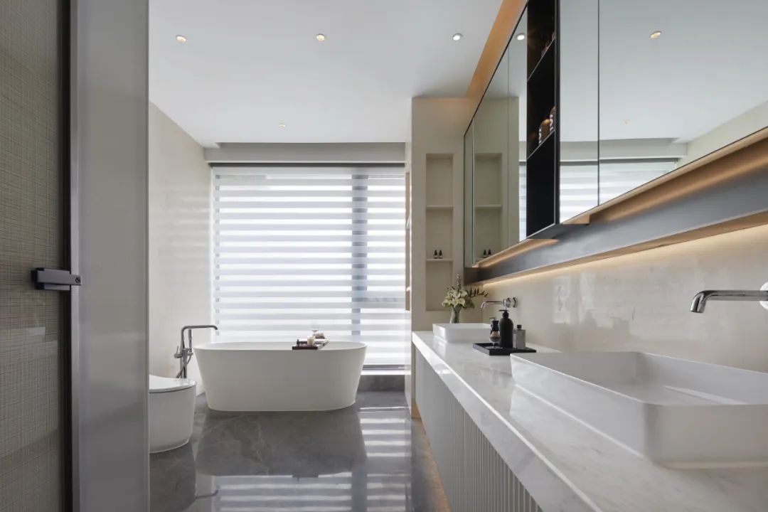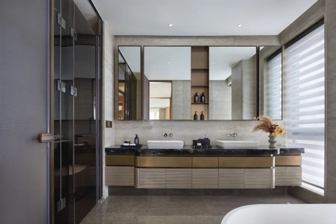 “现代度假风”的角厅,低密大平层,展现现代、轻奢、时尚、艺术、精致的生活韵致,在现代都市中实现轻松的度假生活。