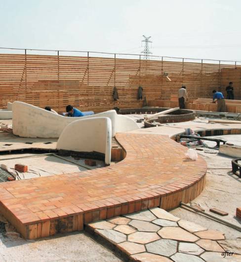 ▲ 建筑施工几近完成,开始种植植物之前,需要先进行松土和施肥的工序。