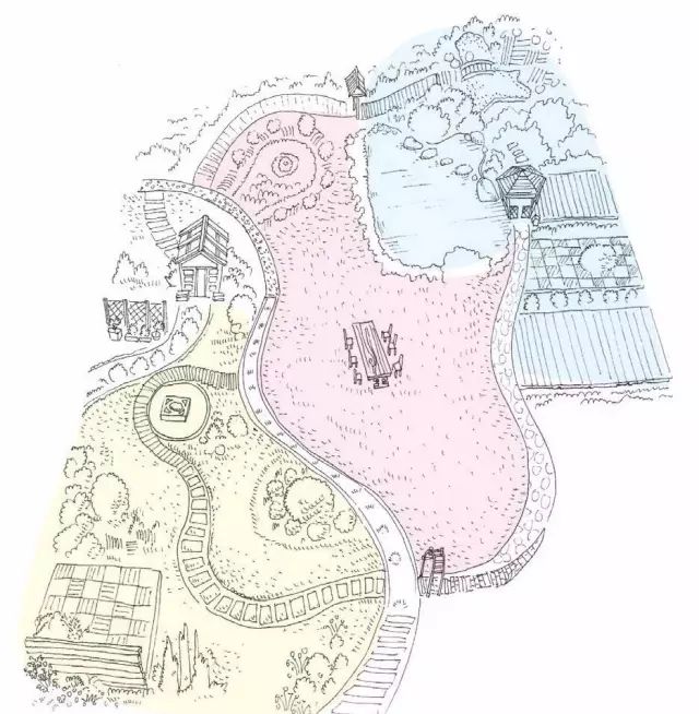 花园像室内一样,应该分割成尺度大小合宜的空间,每个空间对应不同功能。且要用廊架、石板道、灌木体现空间的过渡转换。节奏和对比是花园规划的重点。
