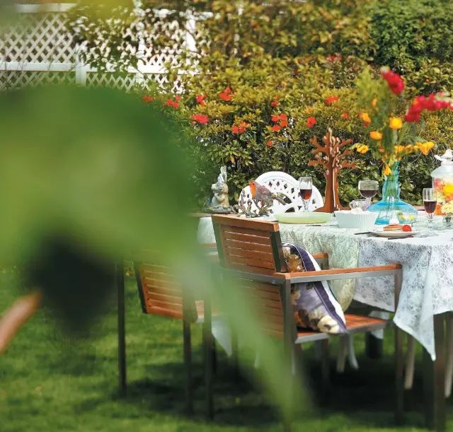 英式大草坪是休闲透气的空间,布置优雅的长桌、柔软的靠垫,成为户外野餐的天然场地;