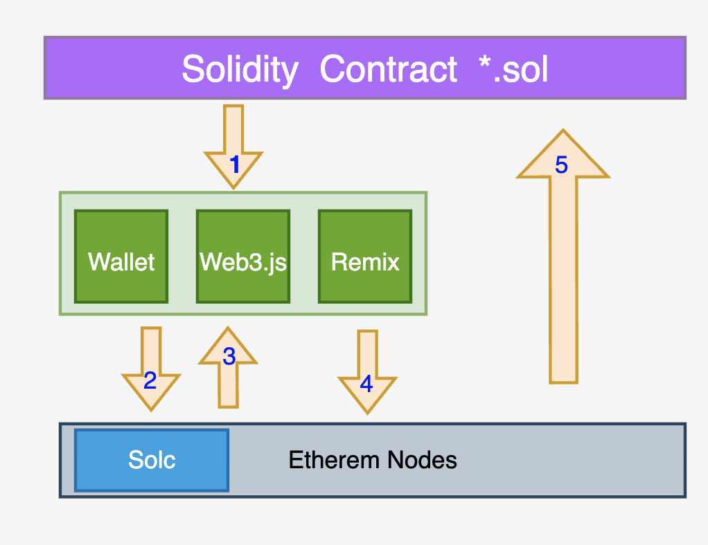 Solidity是一种编译语言,需要编译成字节码,才可以执行在以太坊虚拟机(EVM);