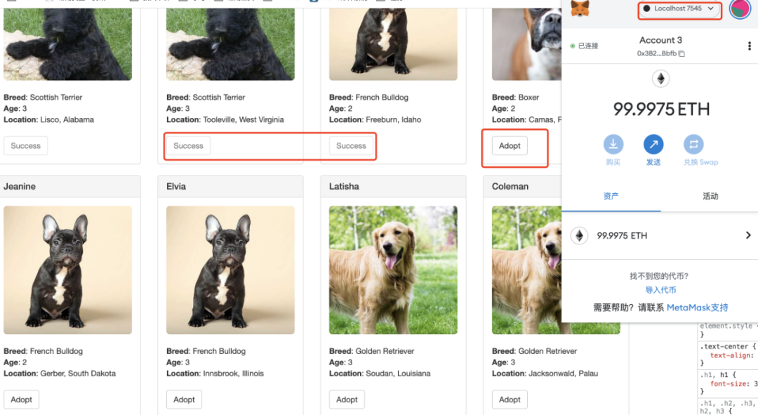 开发dapp前端:使用前端框架进行开发,前端设计到和钱包的连接、调用合约、数据查询等内容。
