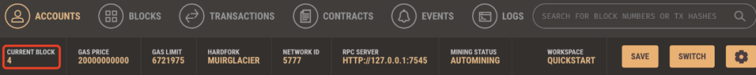 上述操作完成后,会发现在Ganache中存在4个区块链。