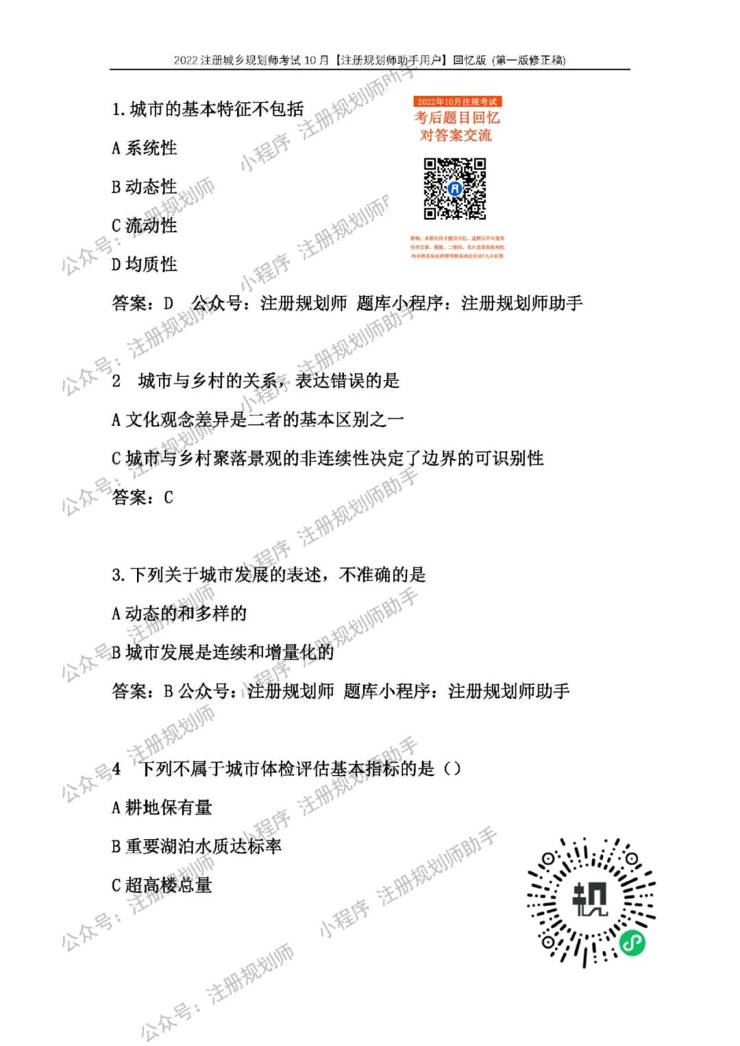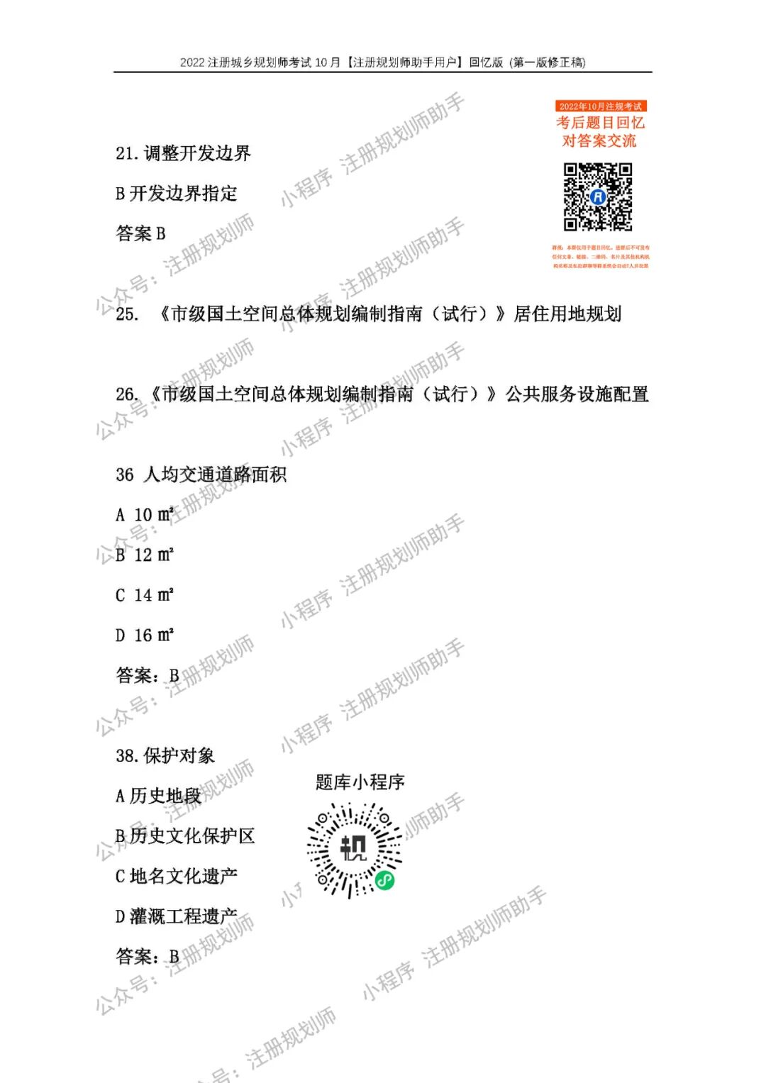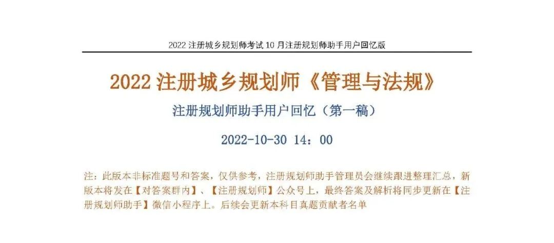 注:此版本非标准题号和答案,仅供参考,注册规划师助手管理员会继续跟进整理汇总,新版本将发在【对答案群内】、【注册规划师】公众号上,最终答案及解析将同步更新在【注册规划师助手】微信小程序上。后续会更新本科目真题贡献者名单
