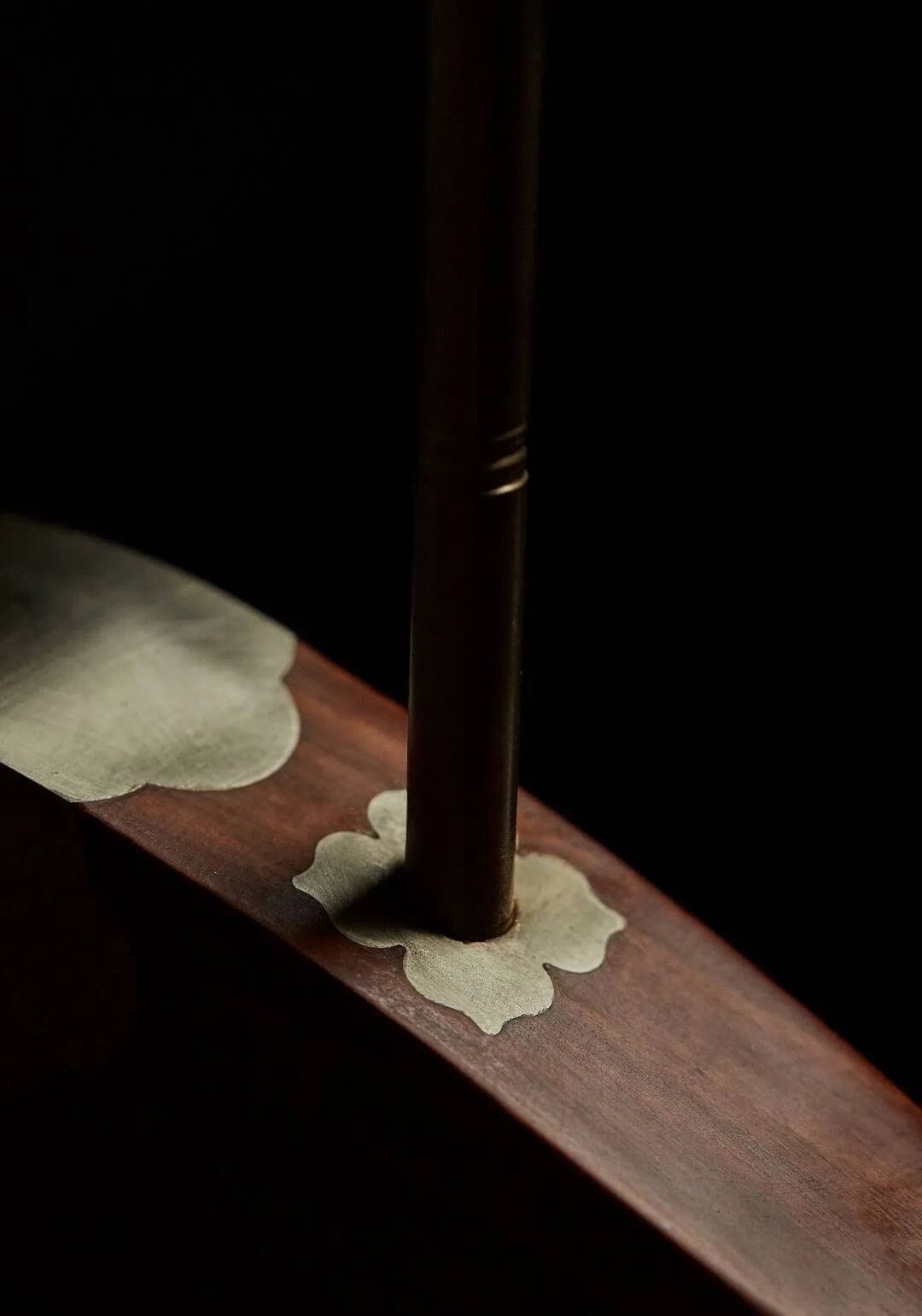 其古旧而幽暗的金属哑光,和花梨木温暖细腻的触感,相互映衬,融为一体。