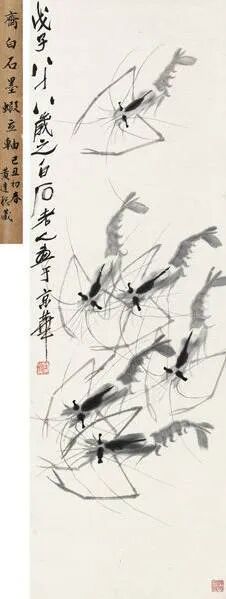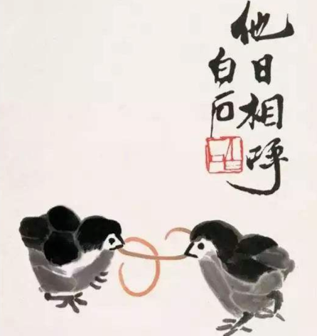 齐白石专长花鸟,笔酣墨饱,力健有锋。但画虫则一丝不苟,极为精细。齐白石还推崇 徐渭 、 朱耷 、 石涛 、 金农 。尤工虾蟹、蝉、蝶、鱼、鸟、水墨淋漓,洋溢着自然界生气勃勃的气息。山水构图奇异不落旧蹊,极富创造精神,篆刻独出手眼,书法卓然不群,蔚为大家。齐白石的画,反对不切实际的空想,齐白石经常注意花、鸟、虫、鱼的特点,揣摩它们的精神。