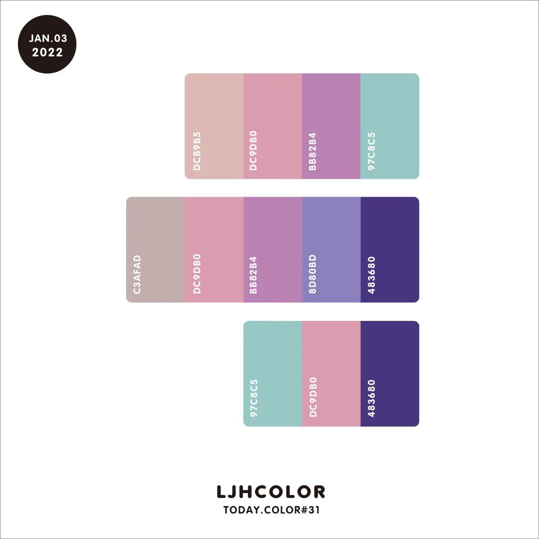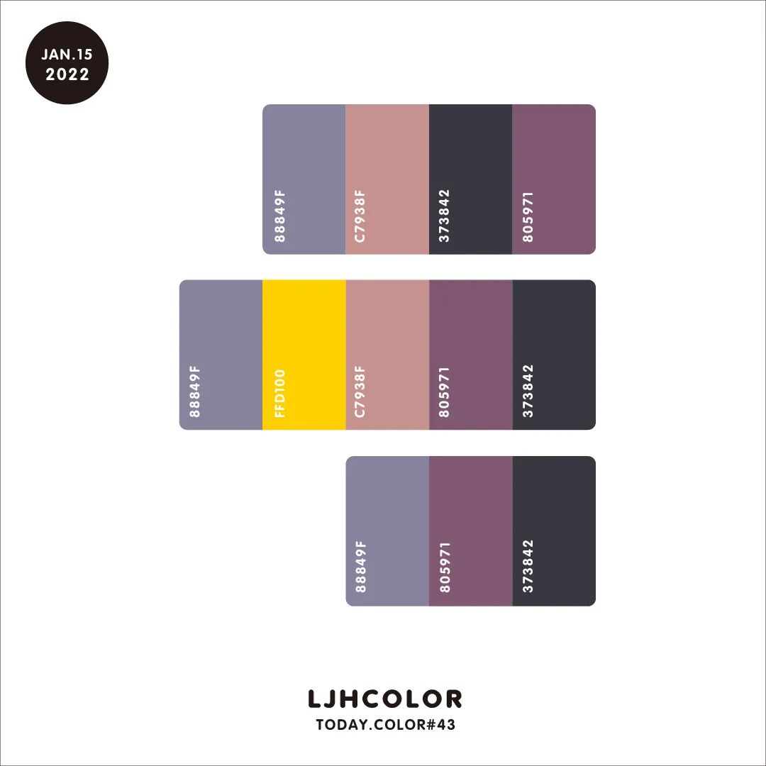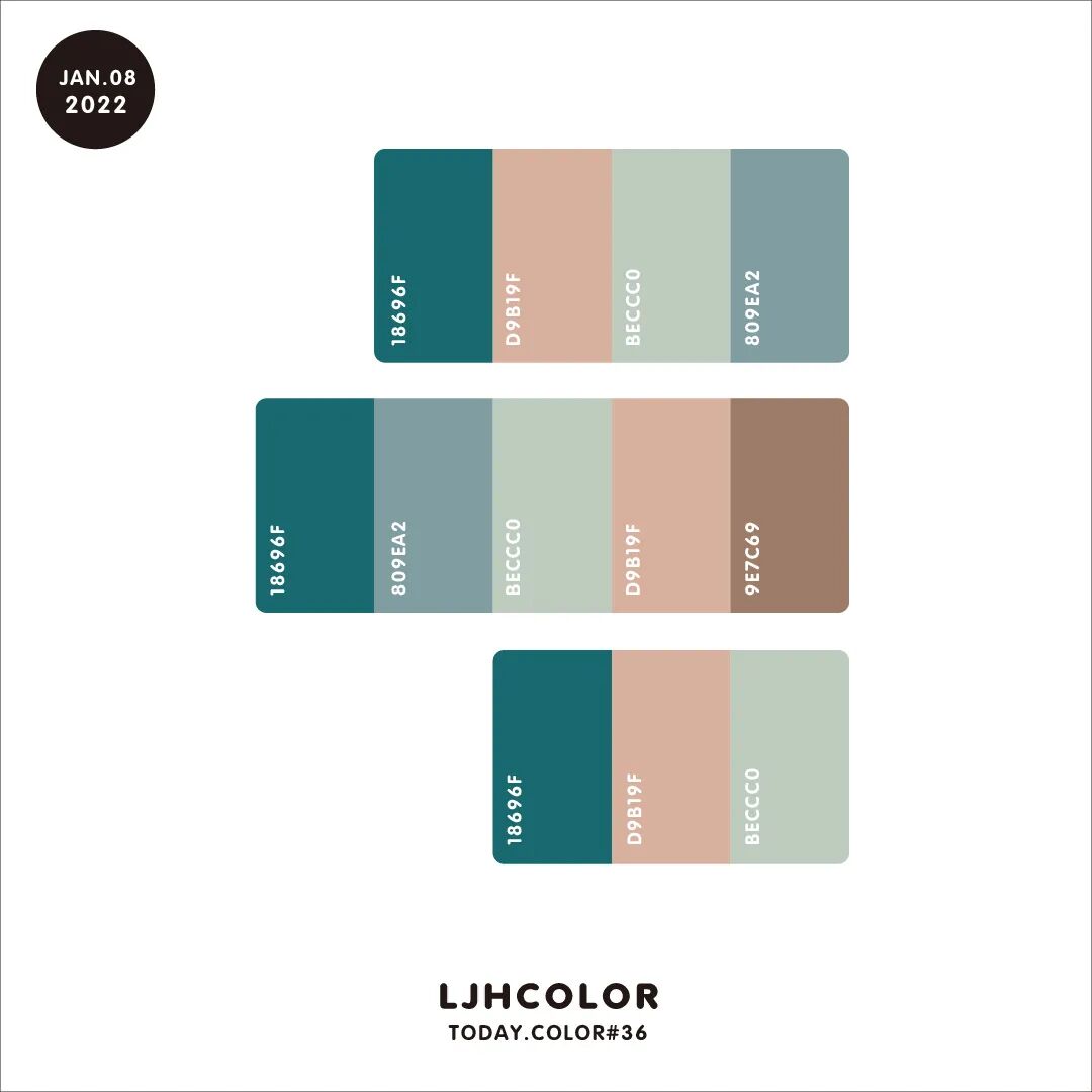 选择初始图可以尽量让思维发散,如果同一天配色多组,怕有重复的方向,这样没有效率。我会先确定主色和辅助色,然后尽量给出平衡色、聚焦色和同频色,读过《梁景红谈色彩设计法则》的人更知道他们是怎么使用的。
