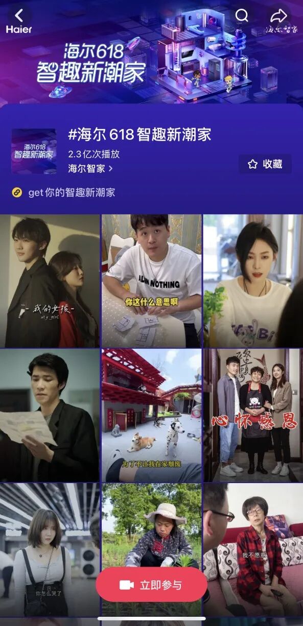 在抖音上,海尔智家还发起#海尔618智趣新潮家 挑战赛,网友积极互动分享自己的奇思妙想,最终专题页一举斩获2.3亿播放量,传播效果不言而喻;