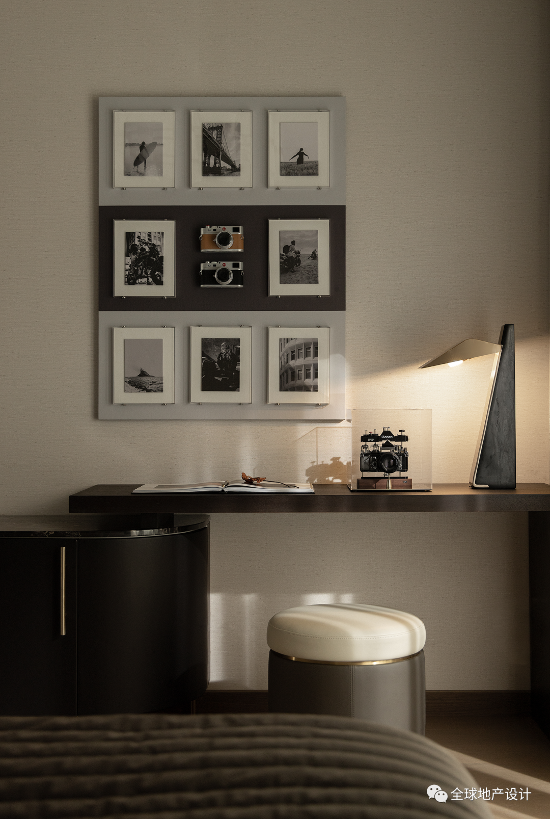 主卧跳脱出了既定格局,游刃于更宽阔的生活主场,近40平米的主卧套房将独立衣帽间系统赋予了兼具妆台与衣帽系统的立体化形式。