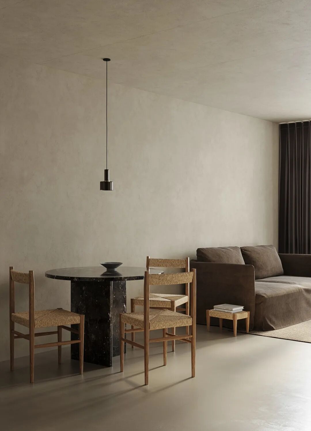The designer created a spiritual residential space with simple but not simple details.