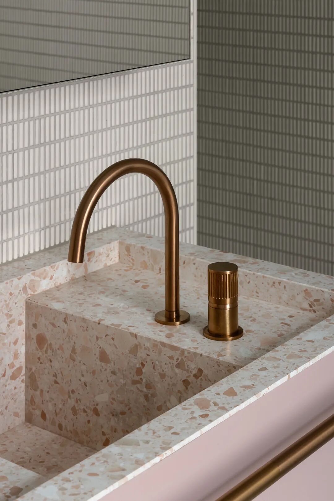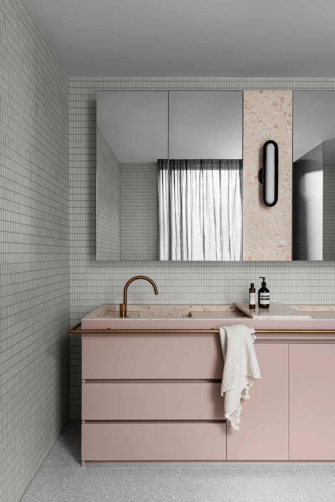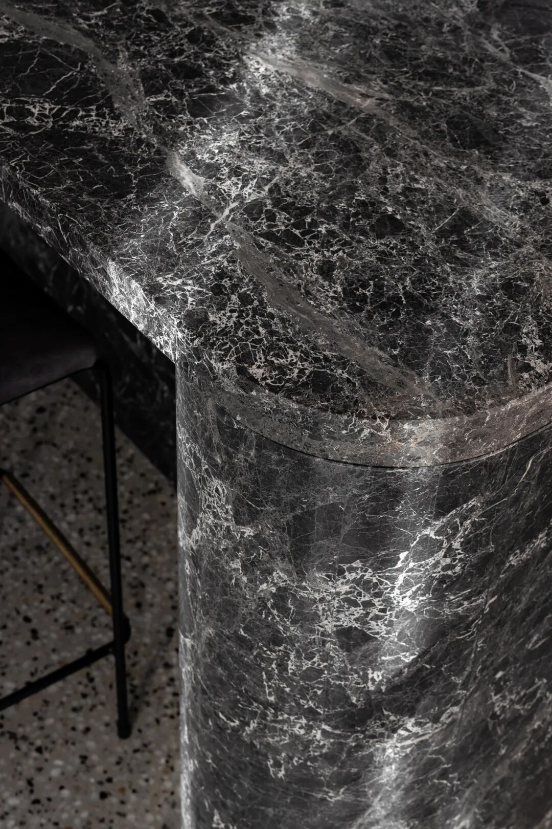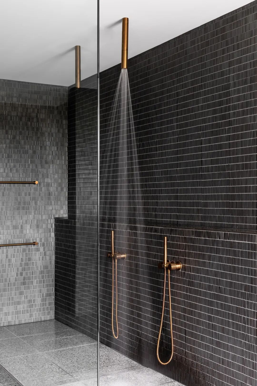 浴室和盥洗室用大胆的钛花岗岩和红色水磨石提供天堂般的体验。主套间是一间私人休息室,带有一个僻静的露台,通过露台,自然光和景观使深色色调和戏剧性的炭灰色石灰岩变得生动起来。