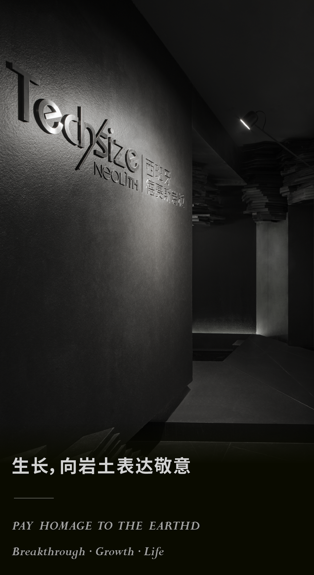 在这个案例中,张灿以“突破・生长・生命”为破题契机,表达出我们对生长于土地之上生命的理解与敬意!这既是对“岩板”这种新型建材的本质性探讨,也是对“人”这种从弱小生命发展到今天,成为主宰世界发展格局的文明带着战栗的敬意!