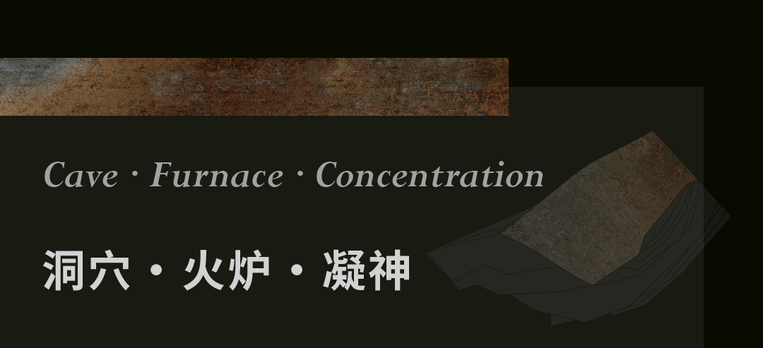 设计师反对现在流行的所谓“沉浸式空间设计”!因为那样太无能、太没有想象力了!他用土与火的变奏,构建出一种上万年的生命变迁的历程!