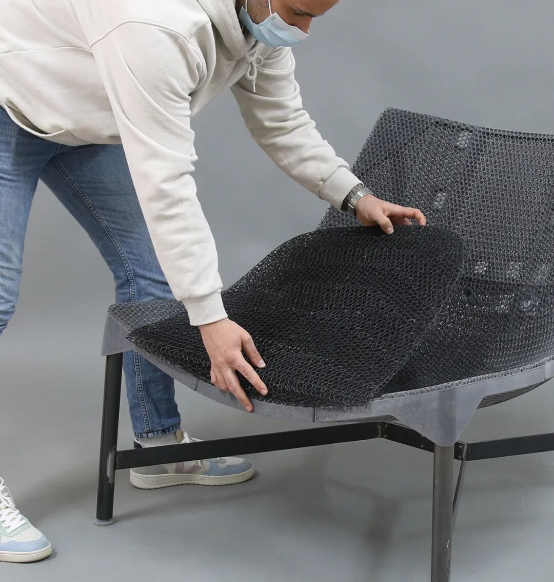 知名的塑料制品公司OECHSLER在2022年米兰国际家具展上,带来了一把3D打印的休闲椅SLOPE。椅子具有更高的设计自由度和良好的缓冲性。不仅可以一次打印出来,多个部件还能回收再利用。椅子的每个区域都可以单独设计。几乎可以以任何可以想象的方式进行塑造。