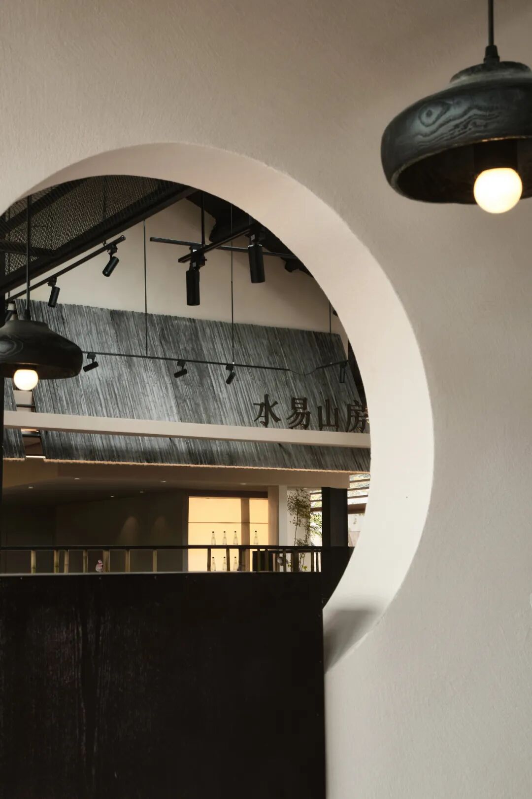 二楼主要为宴会及活动接待,我们在大厅西侧以及东侧包间内部分别植入两个不同形式的圆,以抽象的姿态凝练成空间两端的对望,从而交汇成此与彼、近与远的对话。