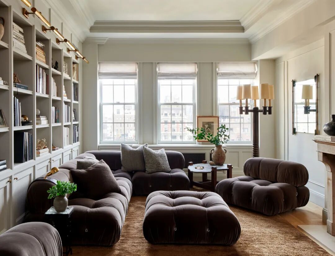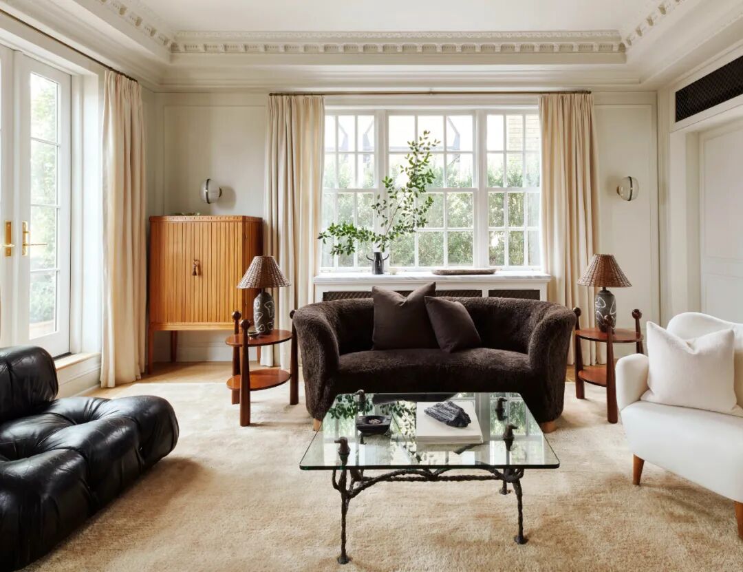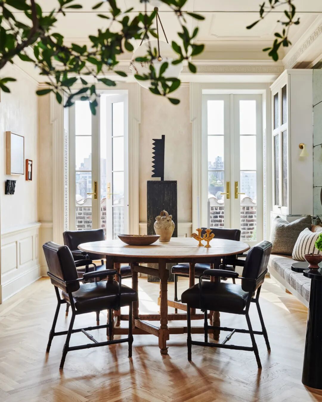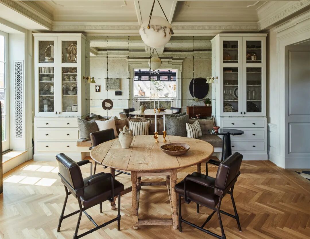 关于自然光和1920年代经典建筑,设计师们在他们的首选中性调色板中工作与纹理细节、古铜色和石膏漆、古董镜和大理石等饰面相得益彰。