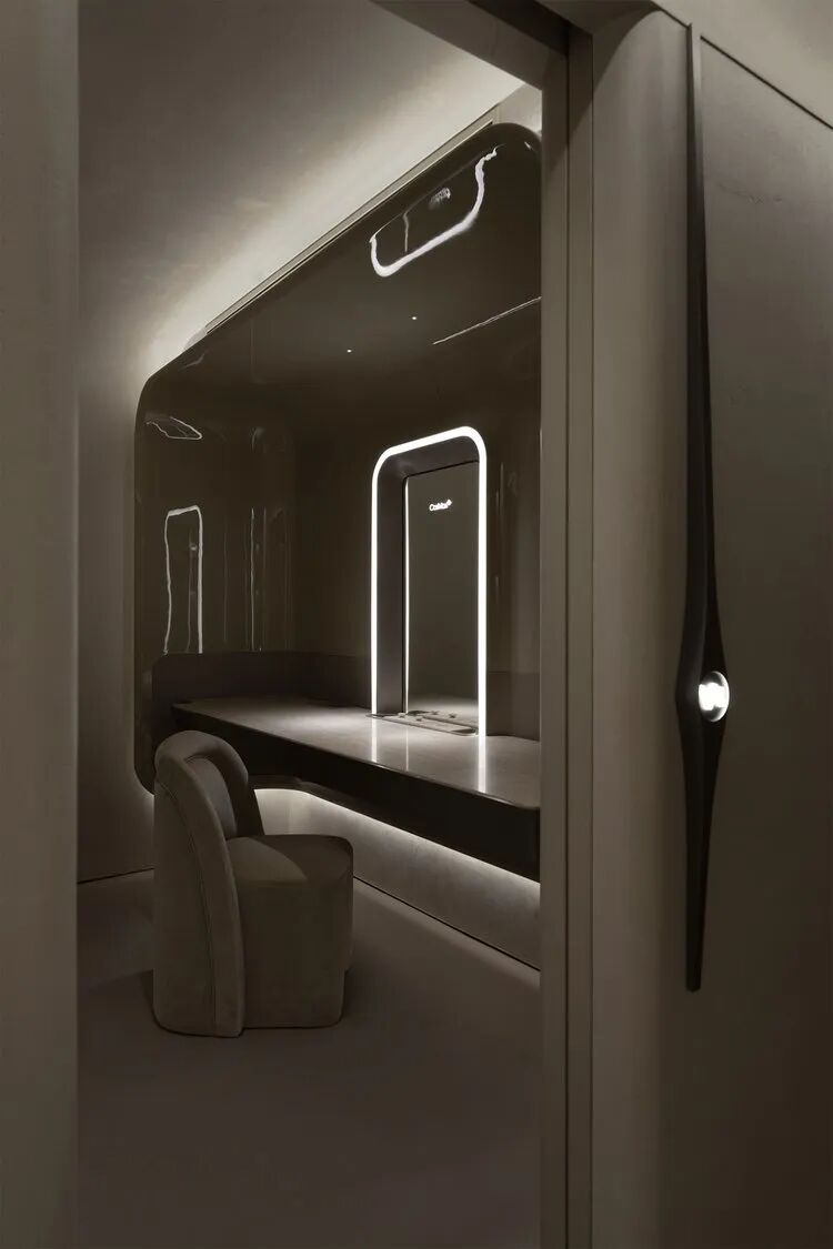 隐私是设计的核心,通过引导客人在各个房间之间的通道特别注意照明和运动。旅程以茧状的休闲舱结束,让客人在休息时有安全感。