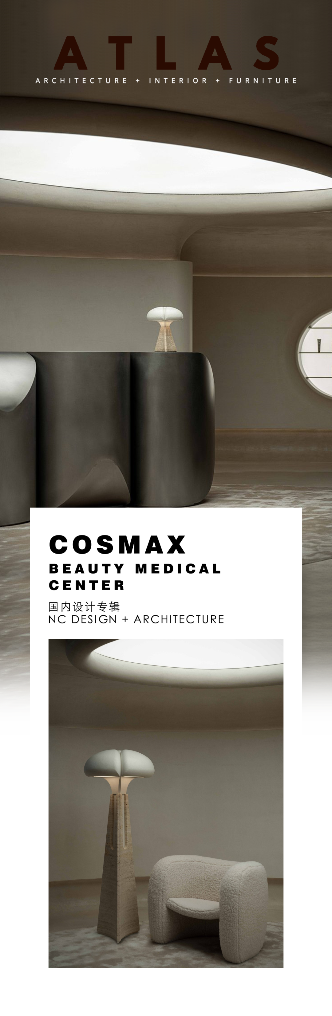 CosMax位于香港市中心一栋现代化的高层办公楼内,是最新成立的美容医疗中心,其内部设计灵感来自地下蘑菇洞。由 Nelson Chow 的建筑设计工作室NC Design + Architecture 设计。