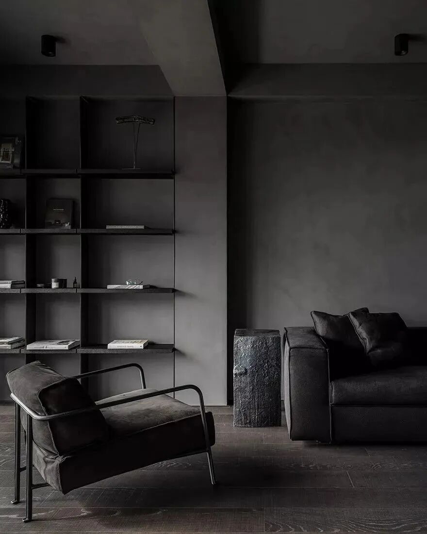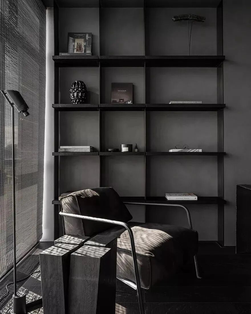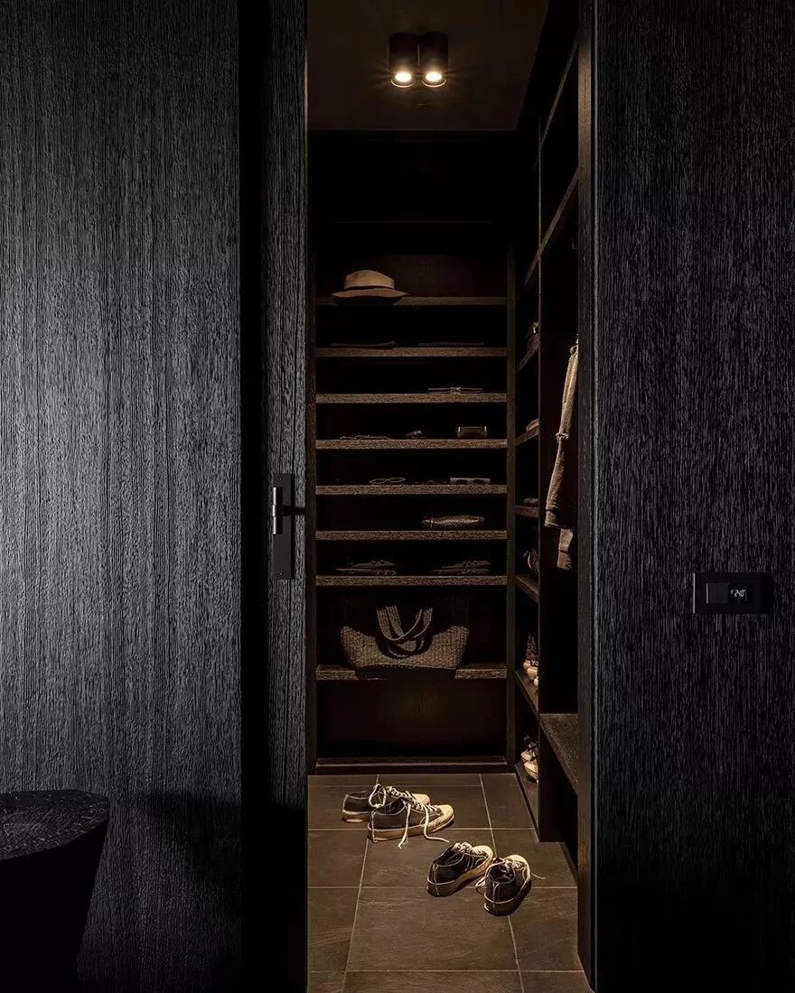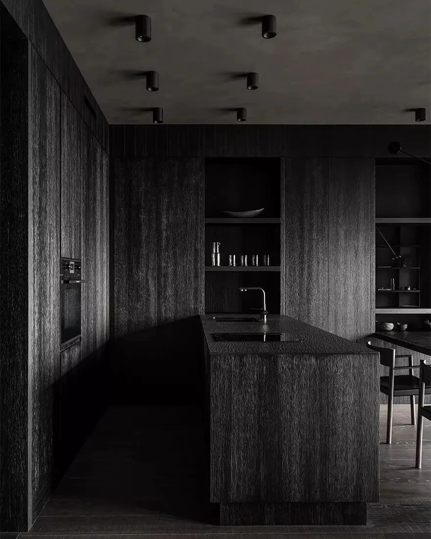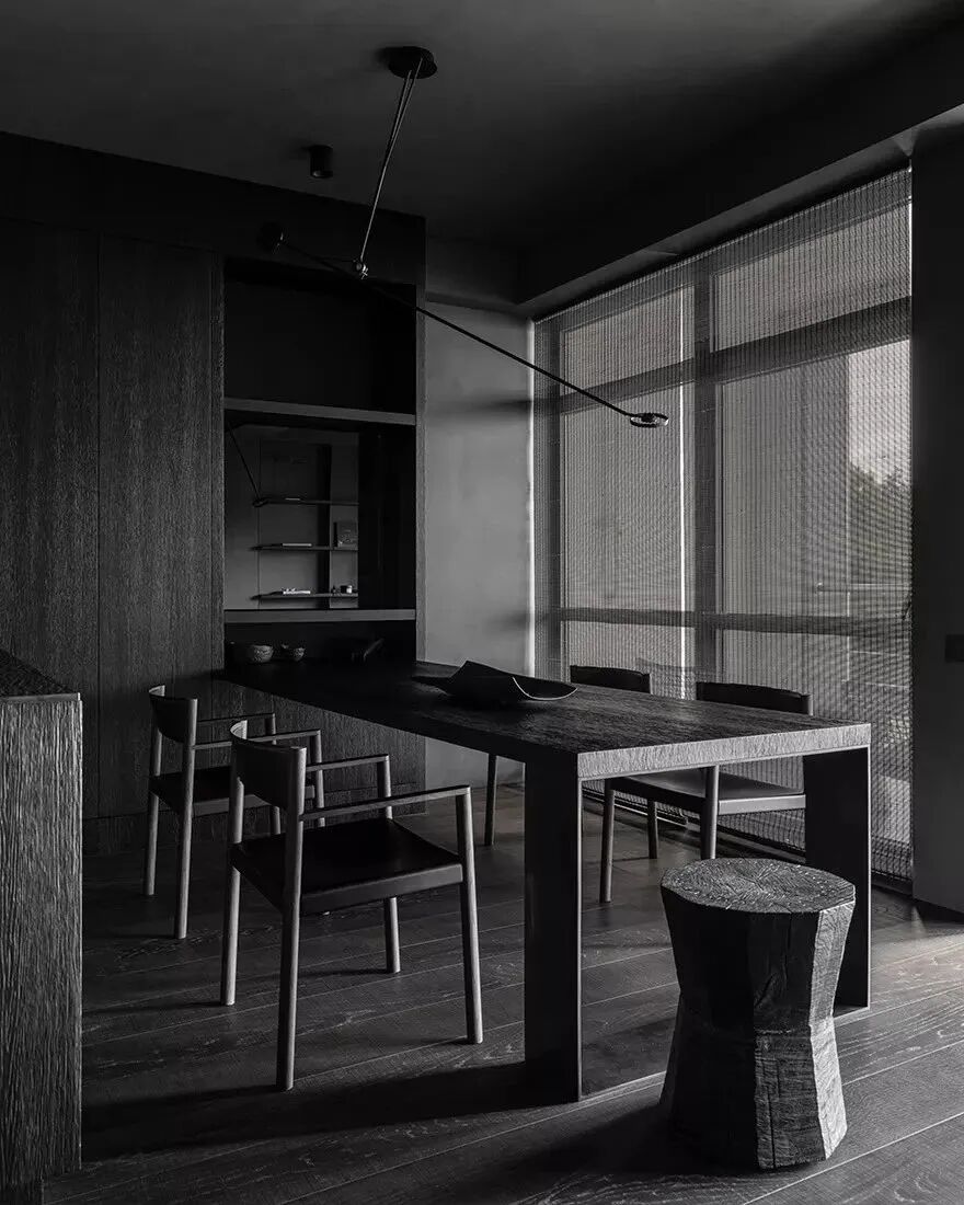 正如设计师所设想的那样,公寓的内部将成为这种自然美景的一个薄薄的框架。为了达到这种效果,选择了黑色作为主色。它在墙壁、天花板、家具和其他元素上深沉而复杂的色调为窗外的无尽距离创造了框架效果。