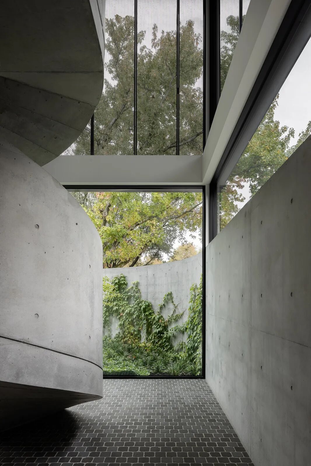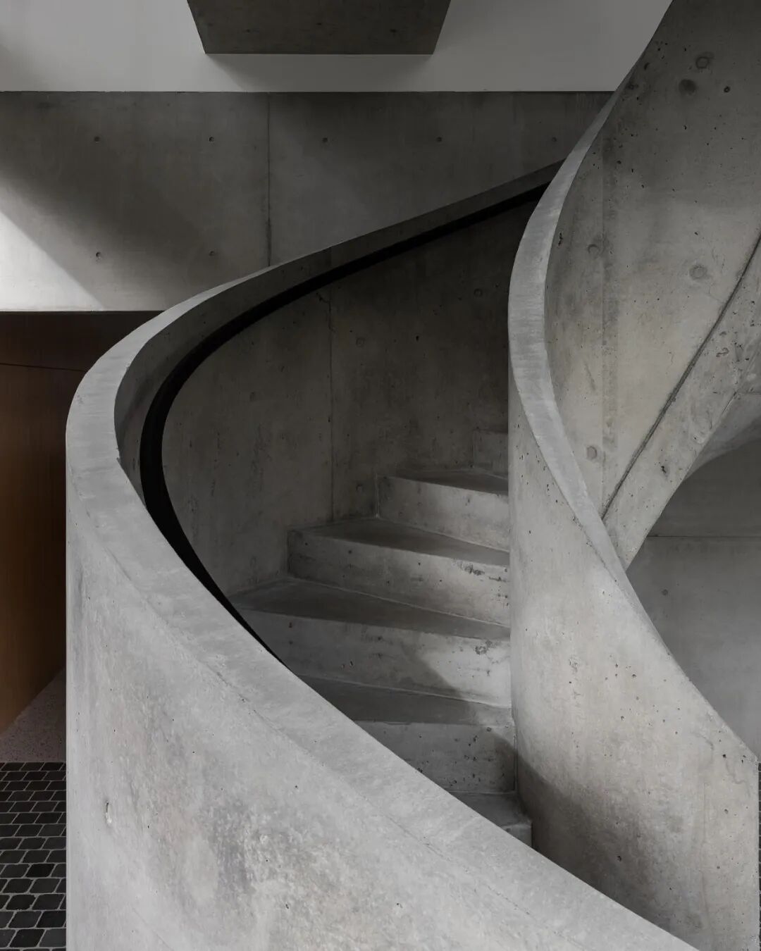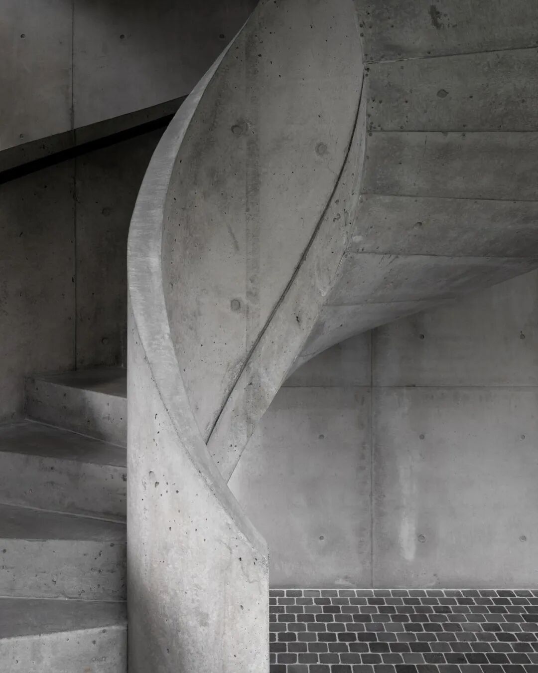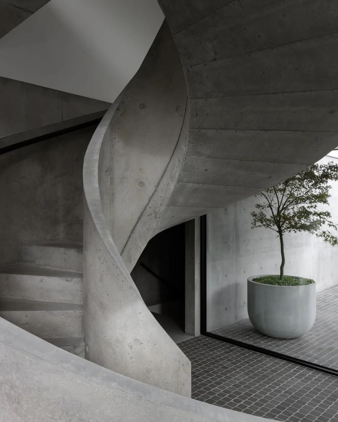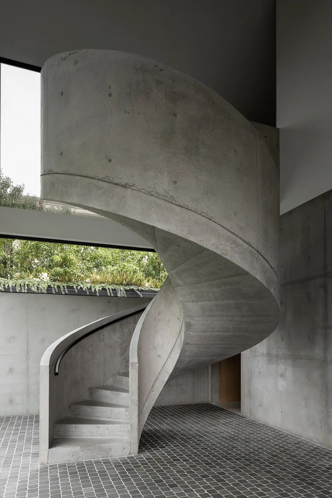 The concrete sculpture stairs connected to each floor are a statement of craftsmanship and smooth movement, which interacts with incident light.